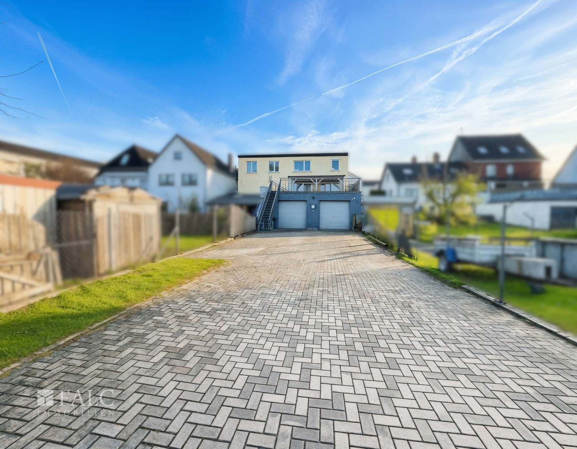 Die angrenzende Hoffläche von rund 140 m² schafft weiteren Raum für Parken, Rangieren oder zusätzliche Außenaktivitäten. Über der Garage befindet sich zudem eine großzügige Terrasse, die als erweiterter Außenwohnraum dient und vielfältige Nutzungsmöglichkeiten – von Entspannung bis hin zu geselligen Abenden – bietet.