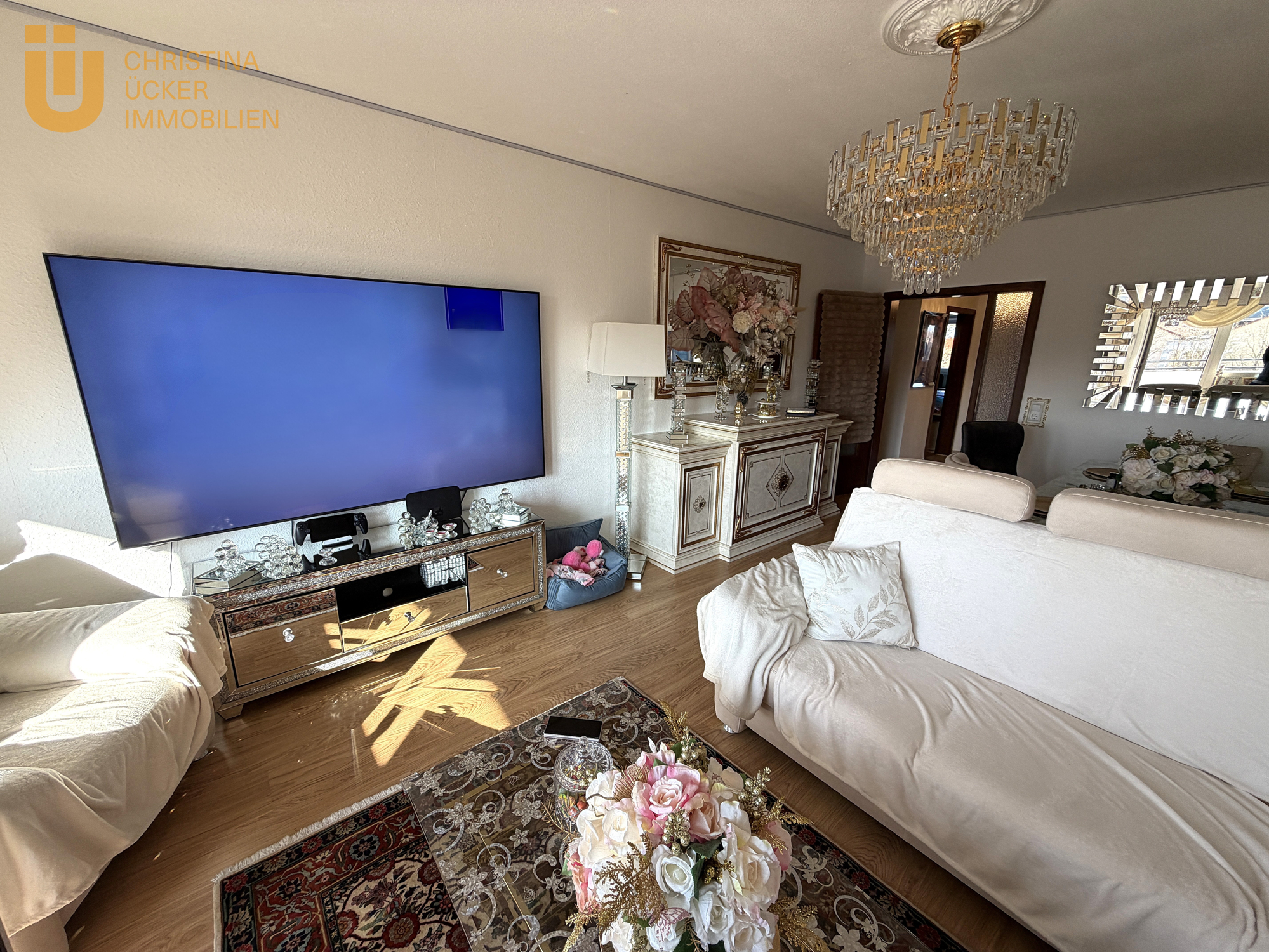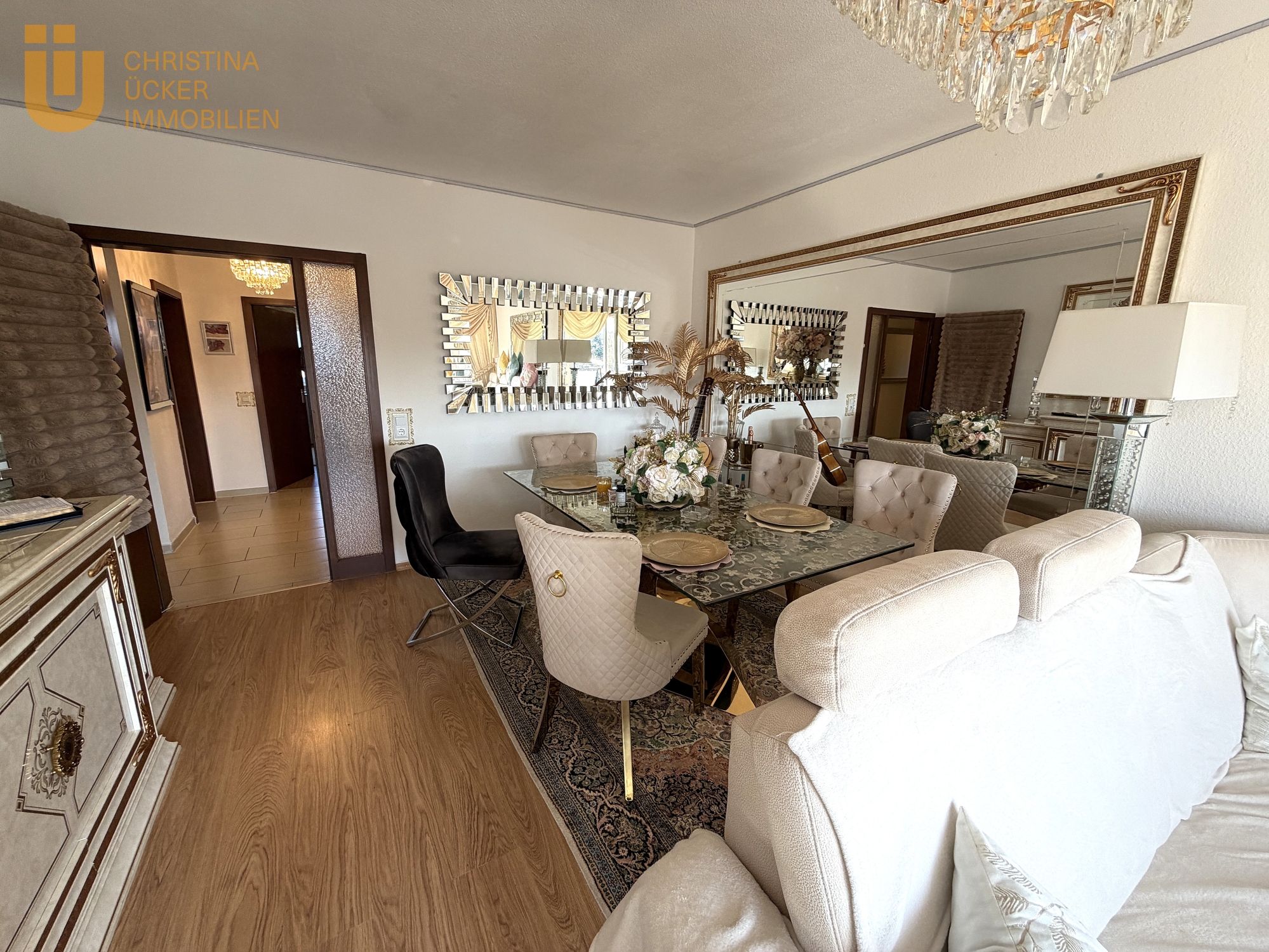 Den Mittelpunkt der Wohnung bildet der großzügige Wohn- und Essbereich. Hier finden sowohl ein großer Esstisch als auch eine gemütliche Sofalandschaft problemlos Platz. Die über die gesamte Raumbreite verlaufende Fensterfront mit Balkontür sorgt für viel Tageslicht und eine angenehme Wohnatmosphäre.