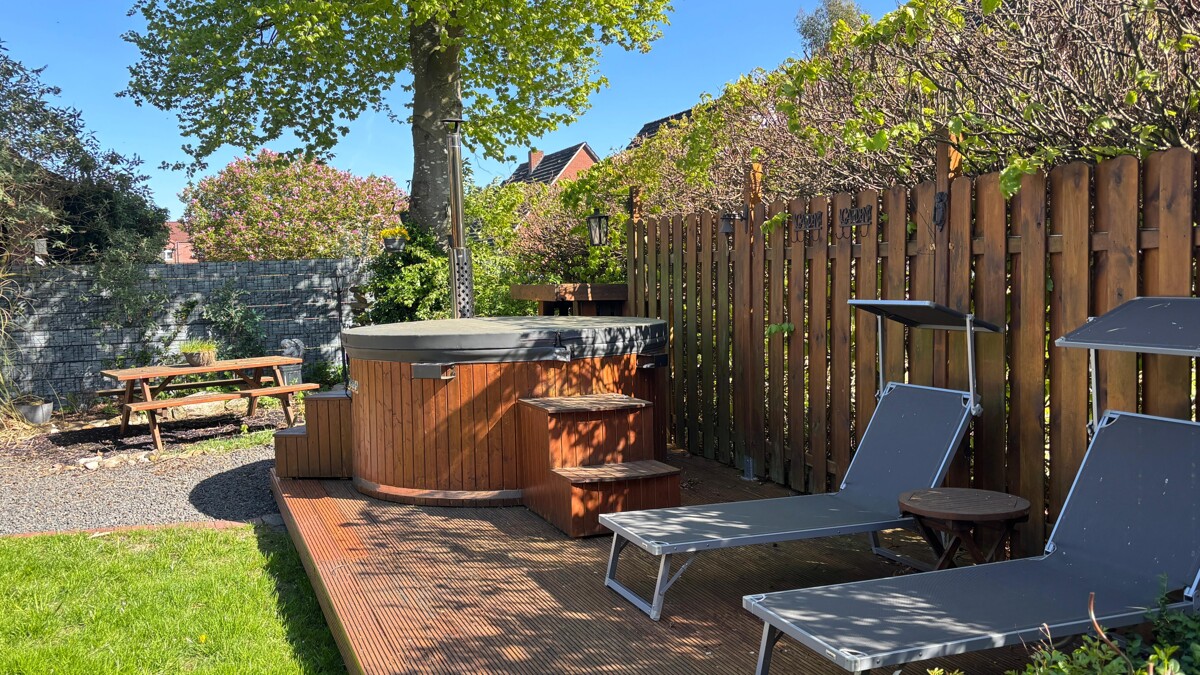 Der Außenbereich überzeugt durch eine durchdachte und hochwertige Gestaltung. Ein liebevoll angelegter, separater Hundebereich bietet optimale Bedingungen für Vierbeiner, ohne die Gesamtästhetik des Gartens zu beeinträchtigen. Die großzügige Terrasse lädt zu entspannten Stunden im Freien ein, während der Jacuzzi für zusätzlichen Komfort und echtes Wellness-Ambiente sorgt. Die gepflegte Gartenanlage rundet das Gesamtbild harmonisch ab und schafft eine private, grüne Oase mit hohem Erholungswert.
