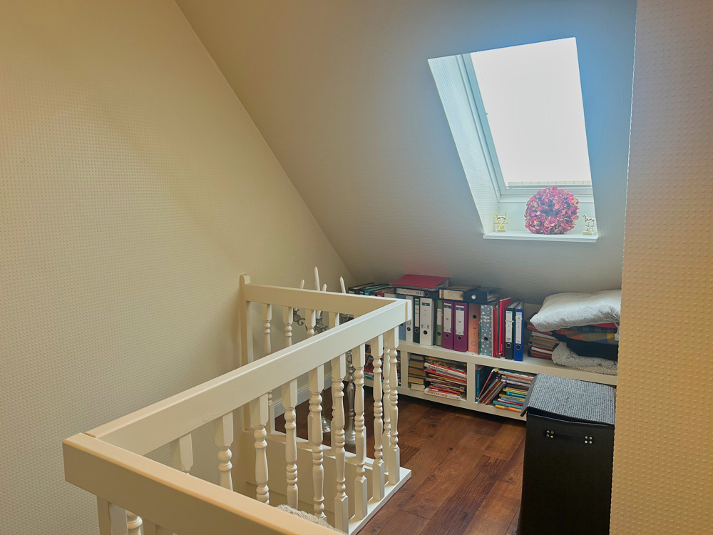 Im Obergeschoss befinden sich das Elternschlafzimmer, ein separates Ankleidezimmer sowie zwei weitere Schlafzimmer, die sich flexibel als Kinderzimmer, Gästezimmer oder Hobbyraum nutzen lassen. Das Badezimmer wurde bereits erneuert und präsentiert sich modern und gepflegt.