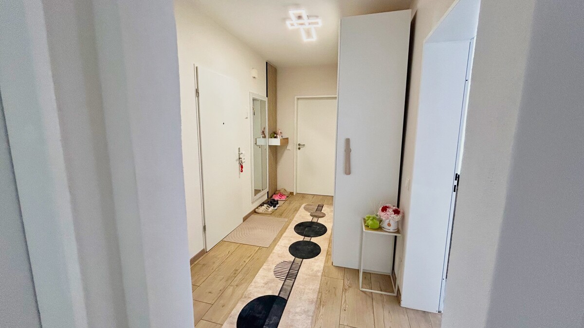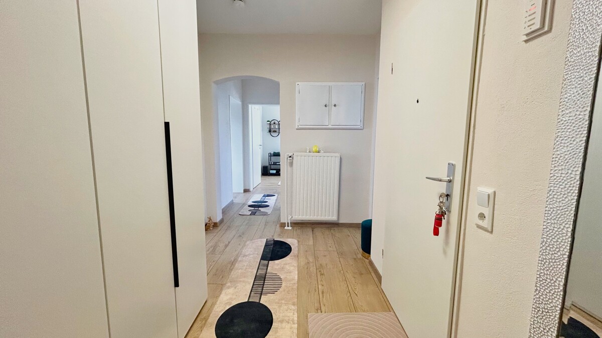 Beim Betreten der Wohnung gelangen Sie in den zentralen Flur, von dem aus alle Räume bequem erreichbar sind. Die separate Küche bietet ausreichend Platz zum Kochen und Verstauen.