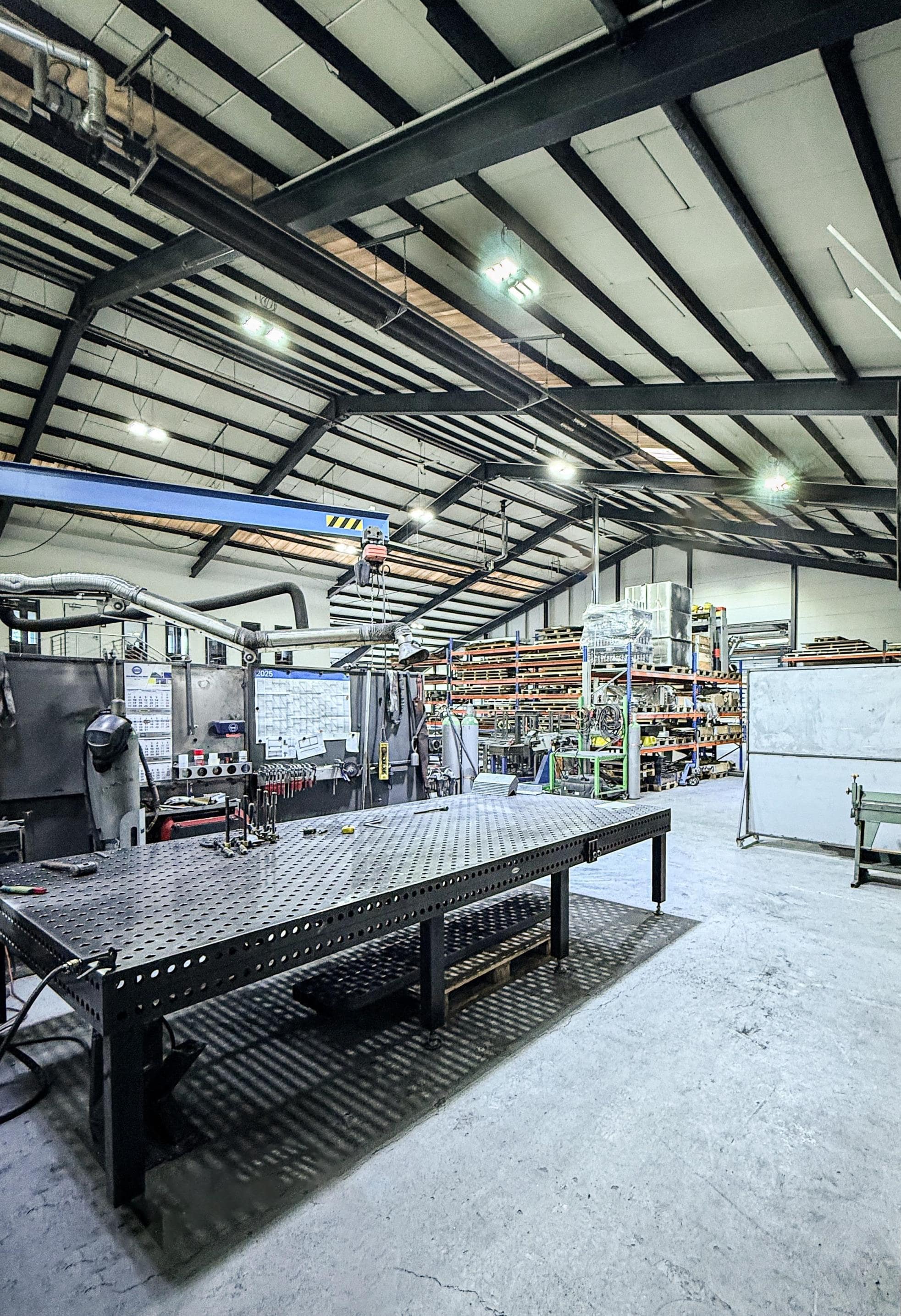 Ein echtes Highlight ist die Produktionshalle mit zwei Kranbahnen, die optimale Voraussetzungen für industrielle Nutzung und effiziente Arbeitsabläufe bietet.