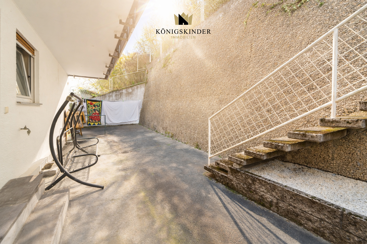 Ein besonderes Highlight sind die zusätzlichen Außenbereiche: Neben dem Balkon steht eine großzügige Terrasse zur Verfügung, die sich ideal für entspannte Stunden im Freien eignet. Ergänzt wird dies durch einen weiteren Gartenbereich im oberen Hang, der zusätzlichen Raum für Erholung, Spiel oder gärtnerische Nutzung bietet.