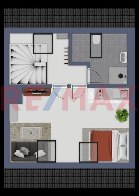 Angrenzend an den Wohnbereich eröffnet der Balkon eine angenehme Erweiterung nach draußen. Er eignet sich für eine kleine Sitzgruppe, Kräuter oder als geschützter Platz, um kurz frische Luft zu schnappen, während drinnen alles im Blick bleibt.
