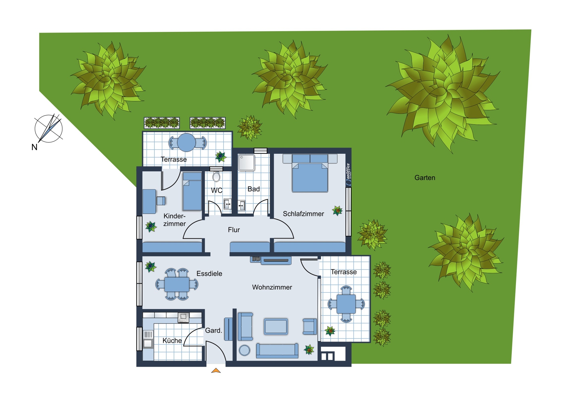 Das ca. 1.016 m² große Grundstück eröffnet zusätzlichen Mehrwert: Ein Garten zur gemeinschaftlichen Nutzung lädt zum Entspannen ein und erhöht die Wohnqualität für Mieter oder Eigennutzer gleichermaßen. Mehrere Terrassen und Balkone ergänzen das Angebot und schaffen attraktive Außenbereiche, die den Wohnkomfort spürbar steigern.