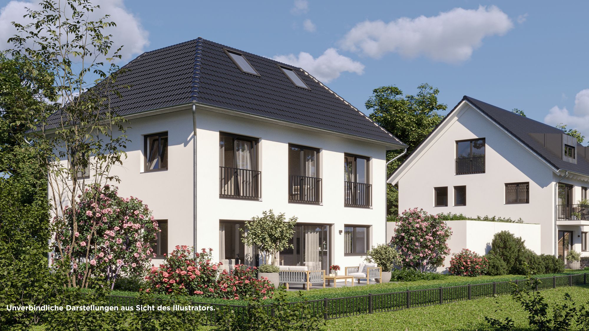 Sanitäre Einrichtungen von Villeroy & Boch, elektrische Rollläden, freitragende Massivholztreppen und individuell gestaltbare Grundrisse bieten zusätzlichen Komfort und Freiraum zur persönlichen Entfaltung. Das Grundstück ist real geteilt – ein wertvoller Pluspunkt für alle, die echtes Eigentum schätzen.