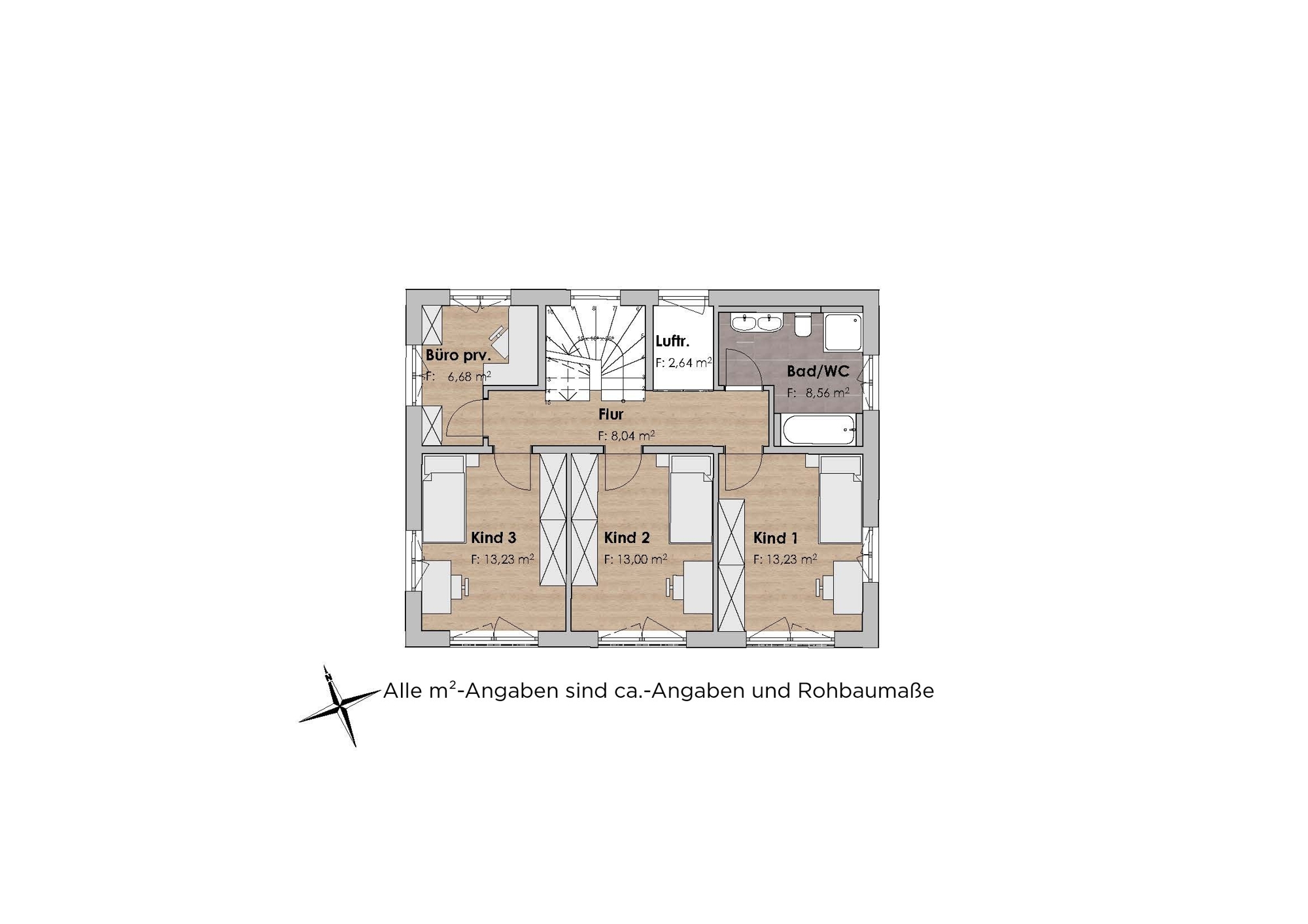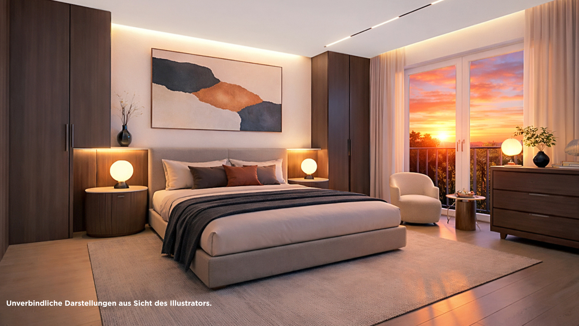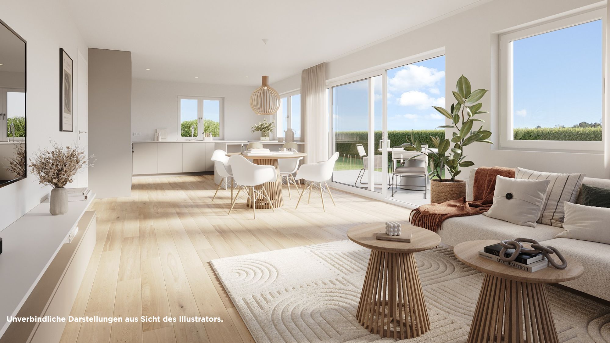 Die dargestellten Grundrisse und Angaben entsprechen dem Stand der Eingabeplanung. Im Rahmen der Ausführungs- und Detailplanung können aufgrund bautechnischer Erfordernisse oder behördlicher Auflagen Änderungen gegenüber dieser Planung möglich sein. Für die Ausstattung ist die Baubeschreibung maßgebend. Dargestellte Möbel und Einbauten sind beispielhaft. Die Grundrisse sind nicht zur Maßnahme für die Möblierung geeignet. Die zeichnerische Darstellung der Perspektiven und Fassaden sowie deren Farbgestaltung ebenso wie die Aussenvisuaisierungen und Innenvisualisierungen geben die Sicht des Illustrators wieder und sind deshalb nicht verbindlich. Die Abbildungen zeigen teilweise Sonderausstattungen, die entsprechend der Baubeschreibung nur nach vorheriger Absprache gegen Mehrkosten erhältlich sind.