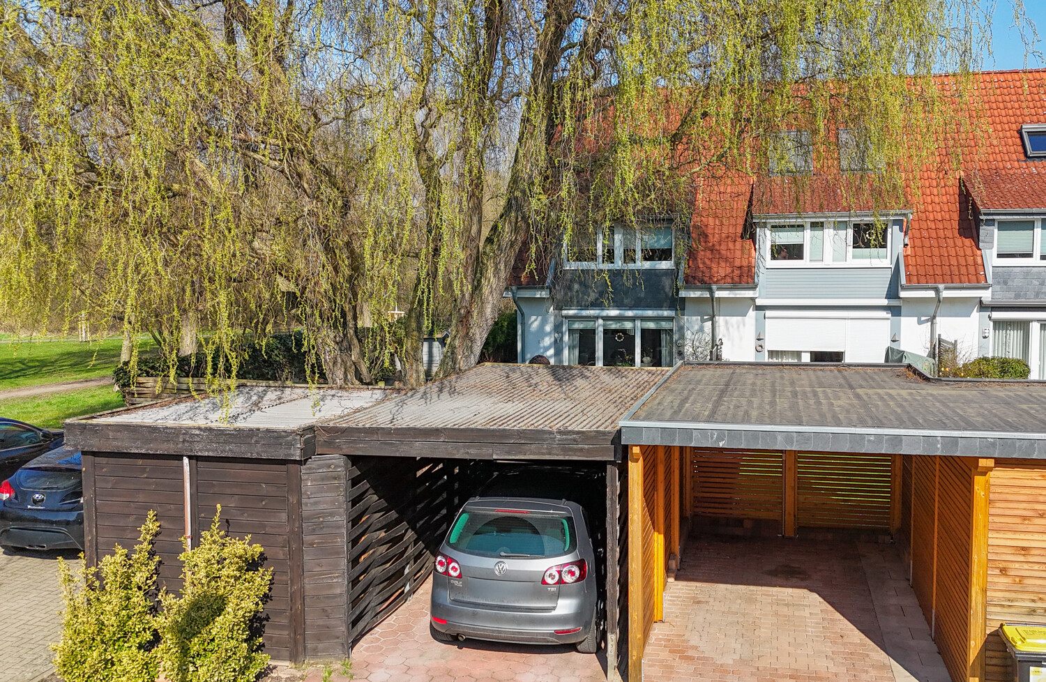 Über den Garten gelangen Sie zum Carport mit integriertem Abstellraum, der zusätzlichen Stauraum für Fahrräder, Gartengeräte oder Werkzeuge bietet. Ergänzend steht ein weiteres Gartenhaus zur Verfügung. Ein Teilkeller erweitert die Nutzungsmöglichkeiten der Immobilie und eignet sich ideal als Lagerfläche oder für individuelle Gestaltungsideen.