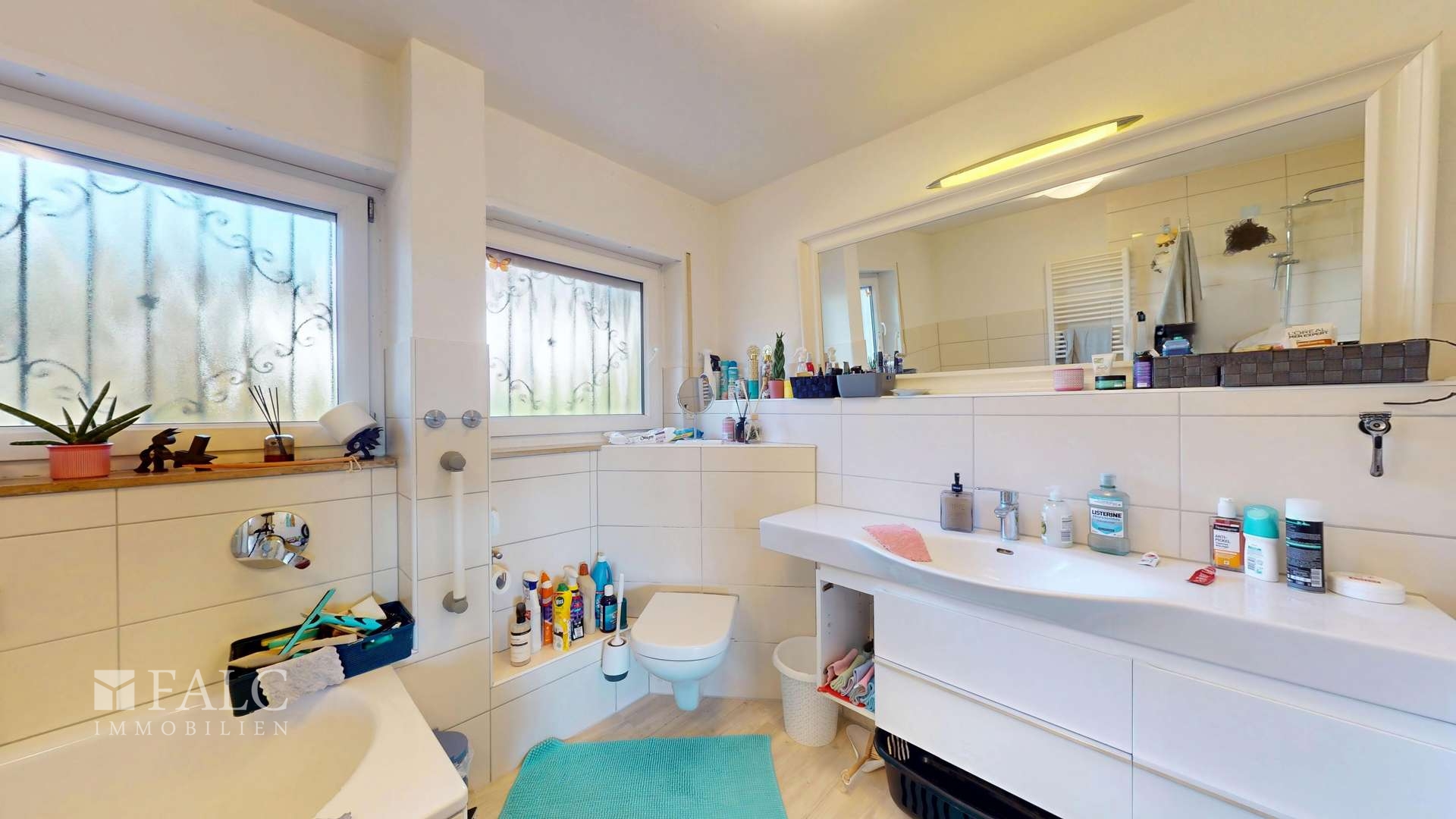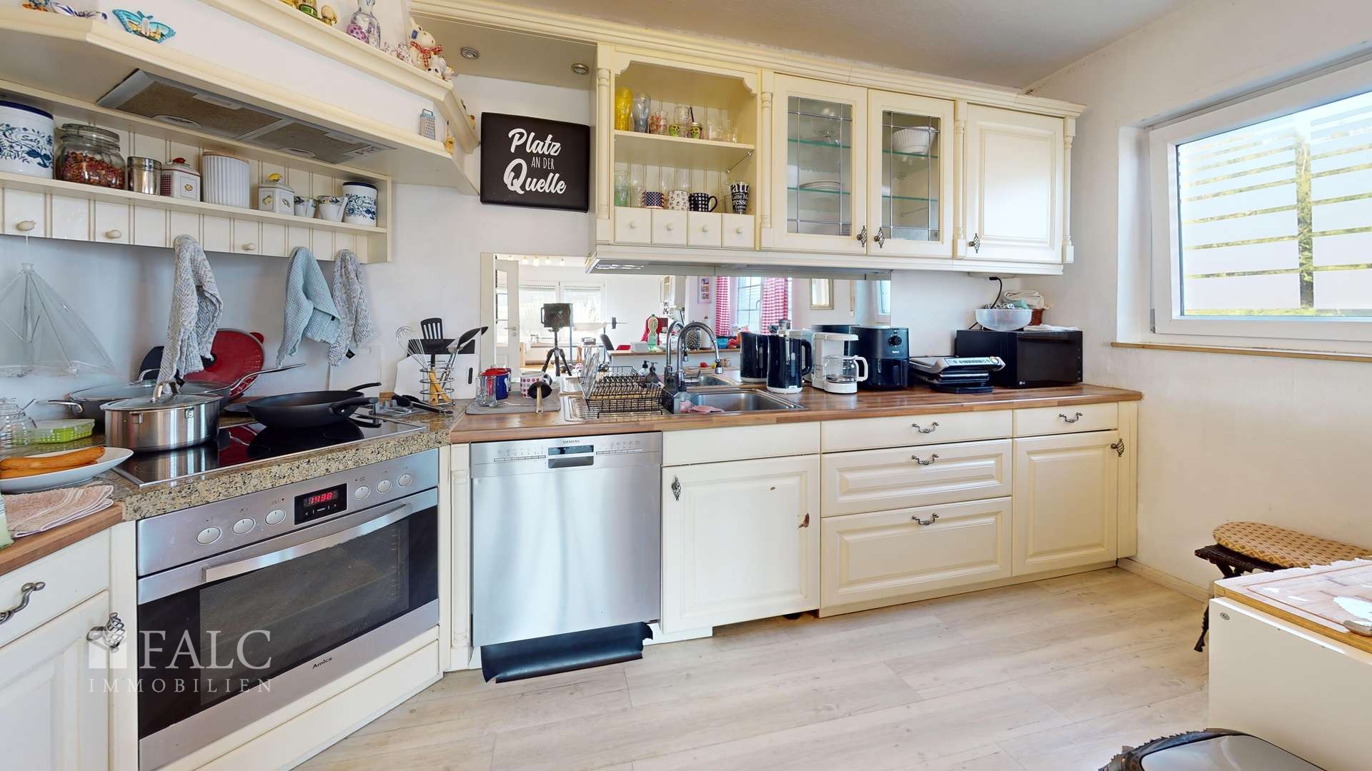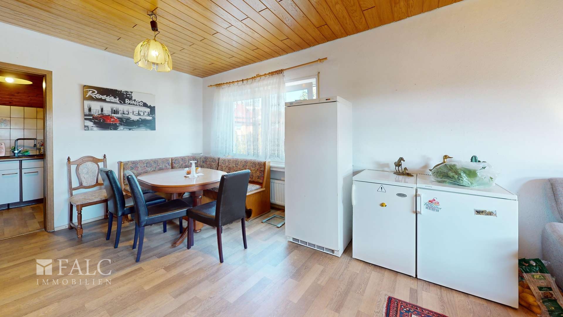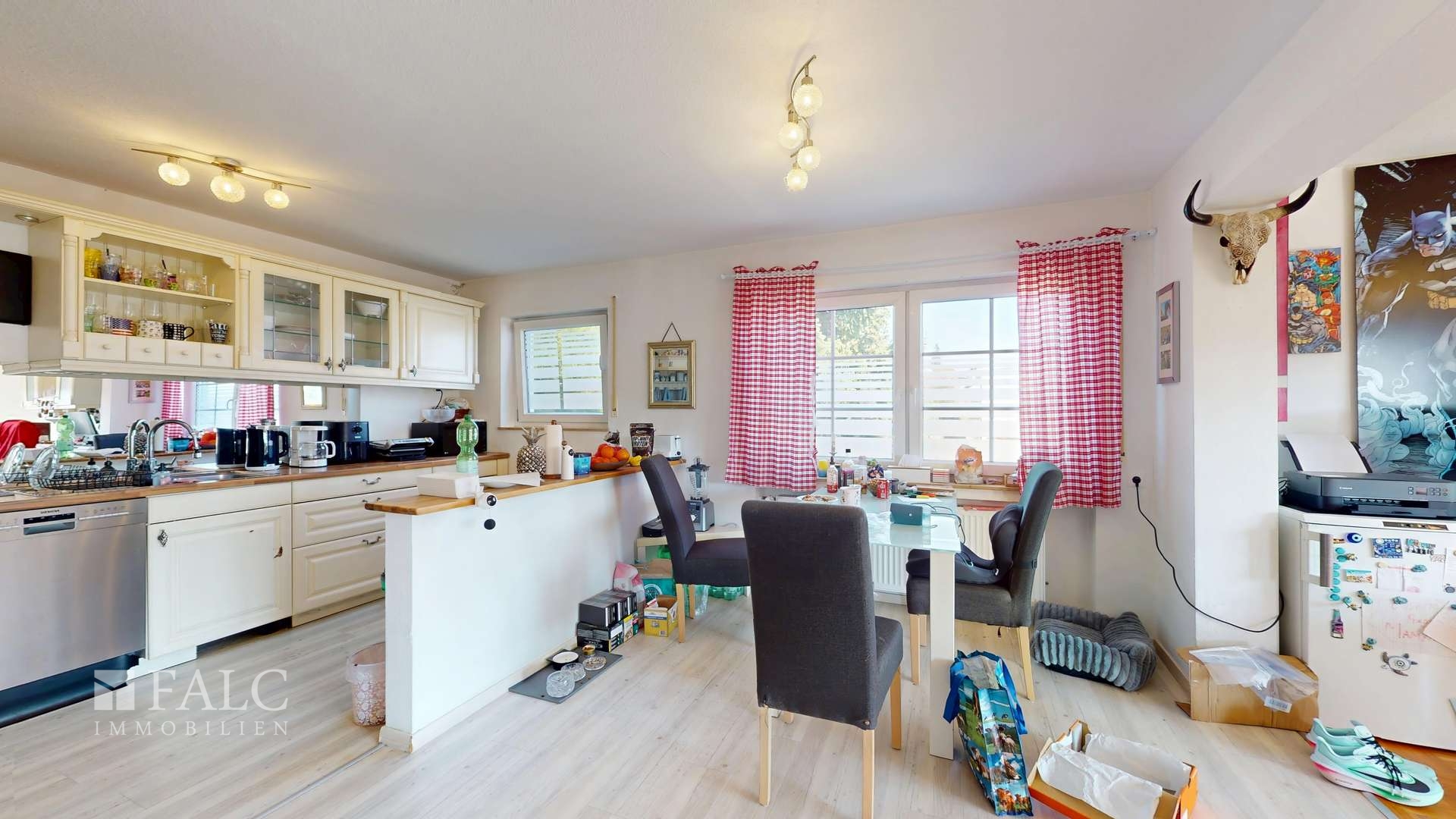 Im Erdgeschoss gliedert sich die Ebene in einen Wohnbereich, einen Essbereich und eine Küche. Ergänzt wird das Raumangebot durch drei weitere Zimmer sowie ein Badezimmer, sodass Arbeiten, Gäste oder Hobby hier ebenso Platz finden wie der Alltag.