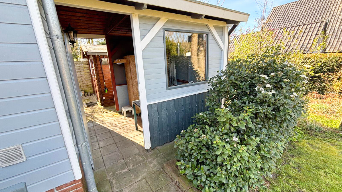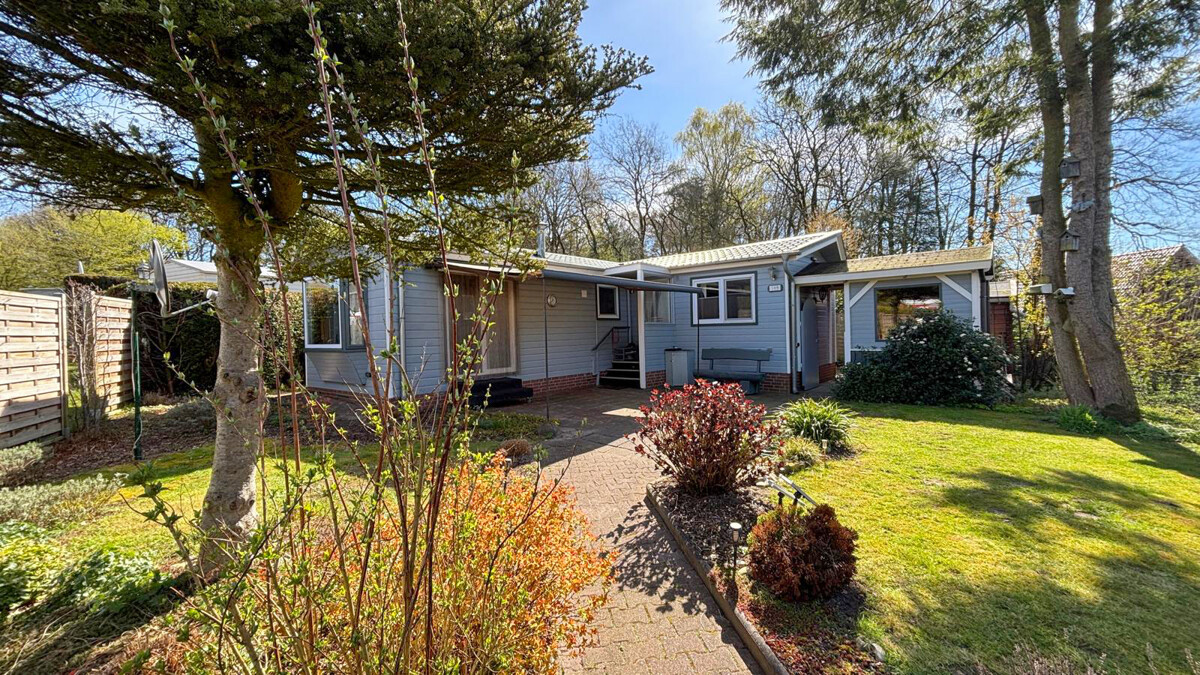 Dieses gepflegte und umfassend modernisierte Chalet überzeugt durch seinen durchdachten Grundriss in L-Form sowie eine ruhige, private Lage auf dem beliebten Campingplatz Heideruh.