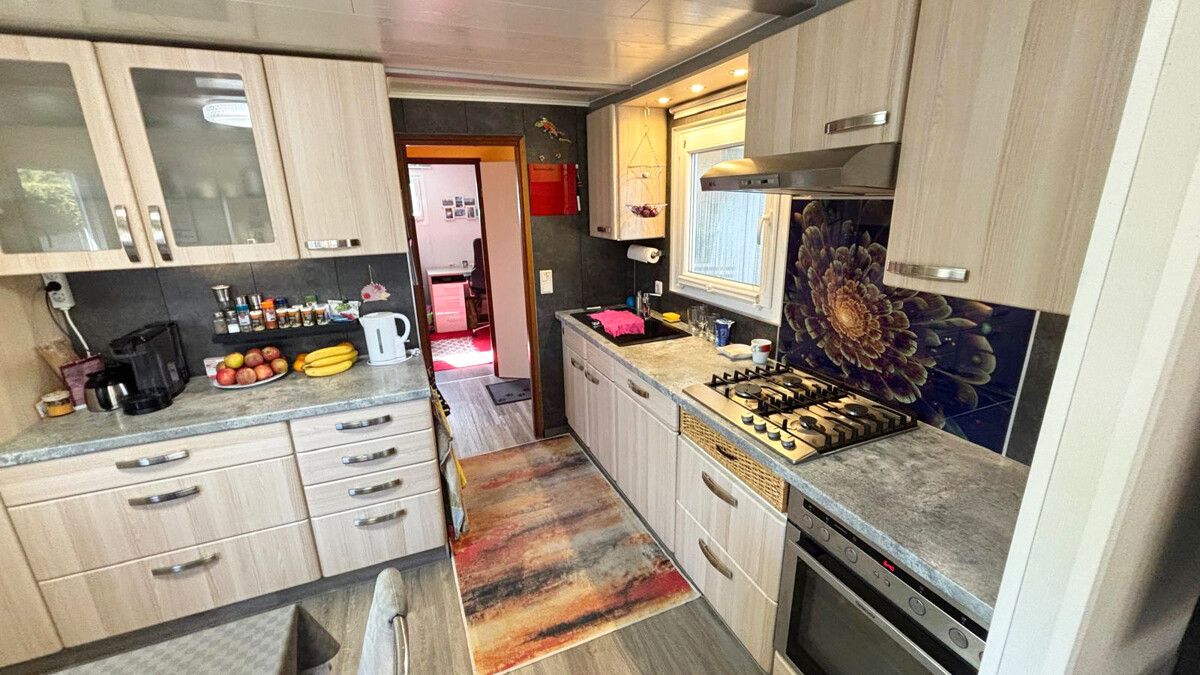 Die neuwertige Einbauküche fügt sich harmonisch in den Wohnbereich ein und wird – ebenso wie die vorhandenen Möbel und Küchengeräte – mit übergeben. Das Chalet wurde zuletzt 2024 frisch gestrichen und präsentiert sich in einem sehr gepflegten Zustand.