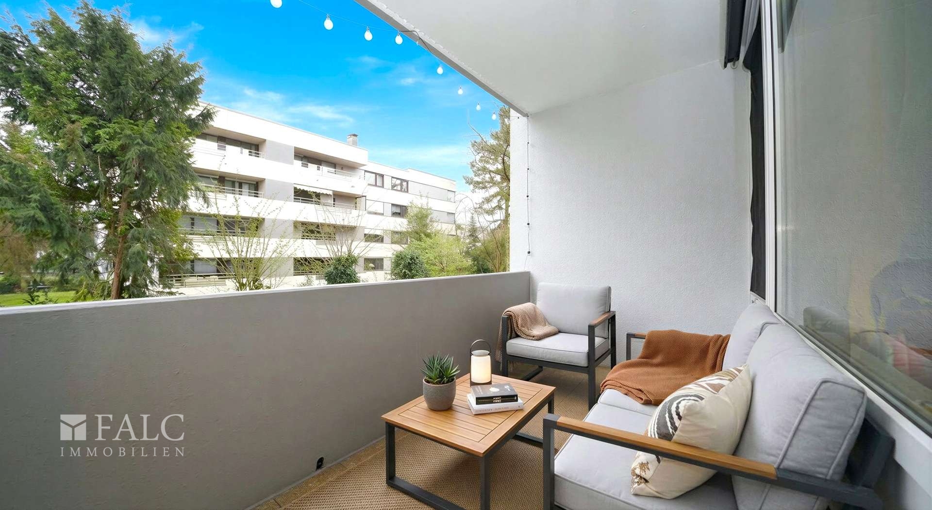 Das großzügige Wohn- und Esszimmer überzeugt durch seine offene Gestaltung und schafft beste Voraussetzungen für entspannte Stunden und gesellige Abende. Von hier aus gelangen Sie direkt auf den Balkon, der zusätzlich auch vom Hauptschlafzimmer aus zugänglich ist und somit einen besonderen Mehrwert für die Haupträume bietet.