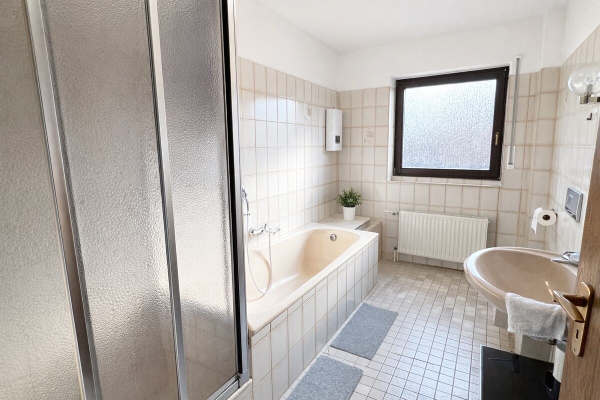 Das Haus ist voll unterkellert und bietet mit einem gemeinschaftlichen Waschkeller zusätzlichen praktischen Nutzen im Alltag. Auch im Außenbereich überzeugt die Immobilie: Eine Doppelgarage sowie zwei weitere Stellplätze im Freien sorgen für ausreichend Parkmöglichkeiten.