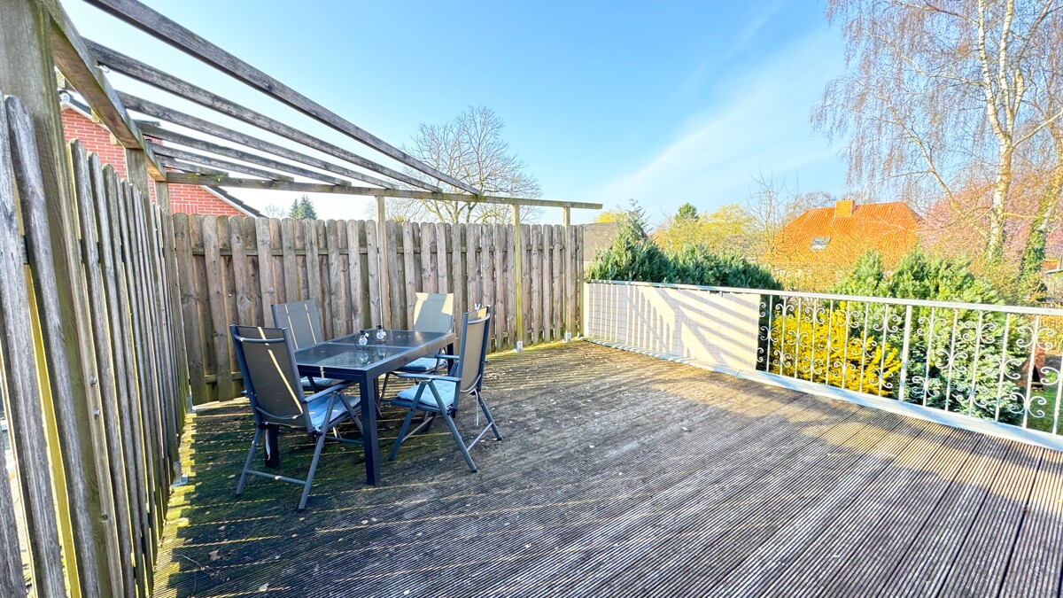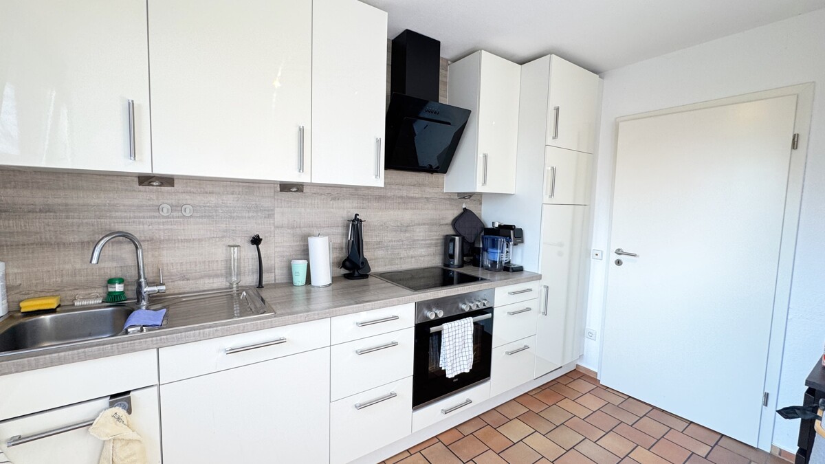 Aufteilung: - Flur mit praktischen Einbauschränken - Garderobenbereich - Gäste-WC - Küche inkl. Einbauküche - Wohn- und Esszimmer - Badezimmer mit Badewanne, Dusche, WC und Waschtisch - 2 Schlafzimmer - sonnige Dachterrasse
