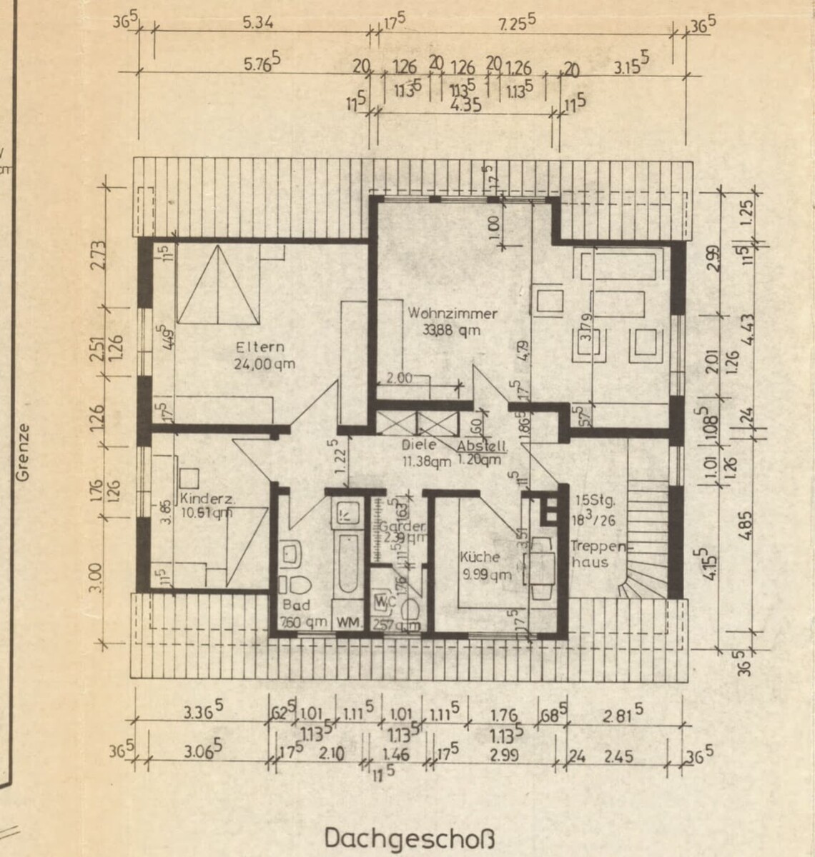 Dachgeschosswohnung: ca. 95 m² Wohnfläche, 3 Zimmer