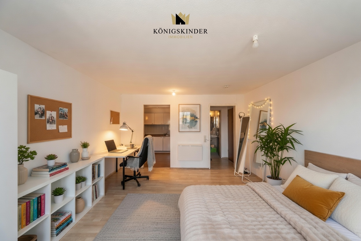 Der helle Wohn- und Schlafbereich lässt sich flexibel gestalten und schafft durch große Fensterflächen eine freundliche, lichtdurchflutete Atmosphäre. Die kompakte, funktionale Küche sowie das gepflegte Badezimmer runden das Raumangebot optimal ab. Ein besonderes Highlight ist der zur Wohnung gehörende Duplex-Tiefgaragenstellplatz, der komfortables und sicheres Parken garantiert.