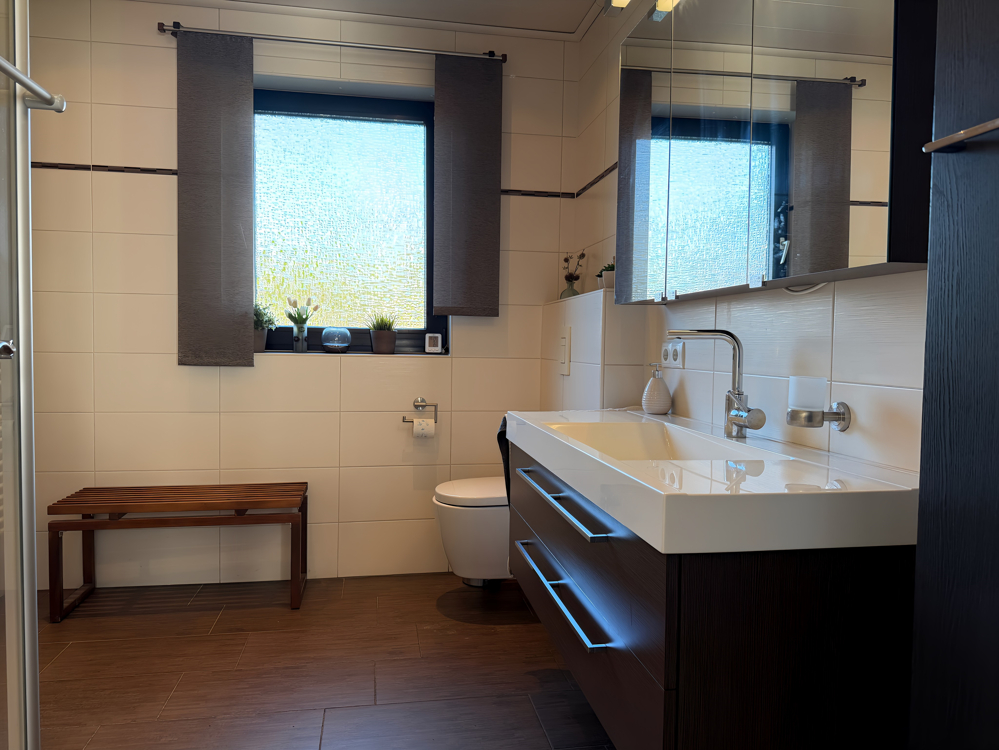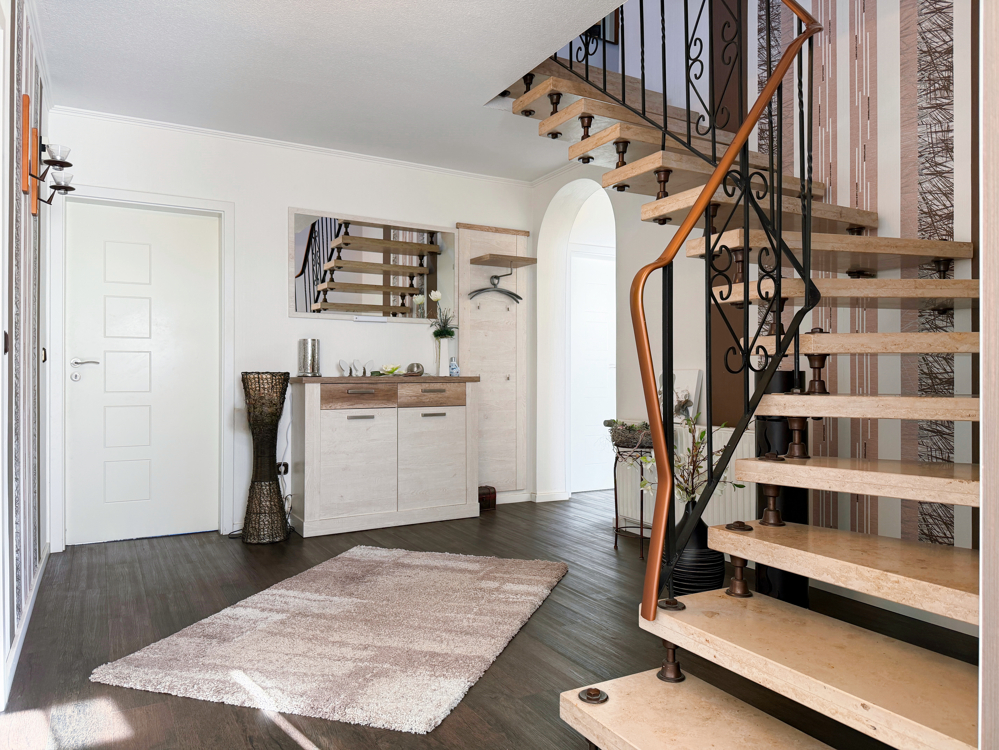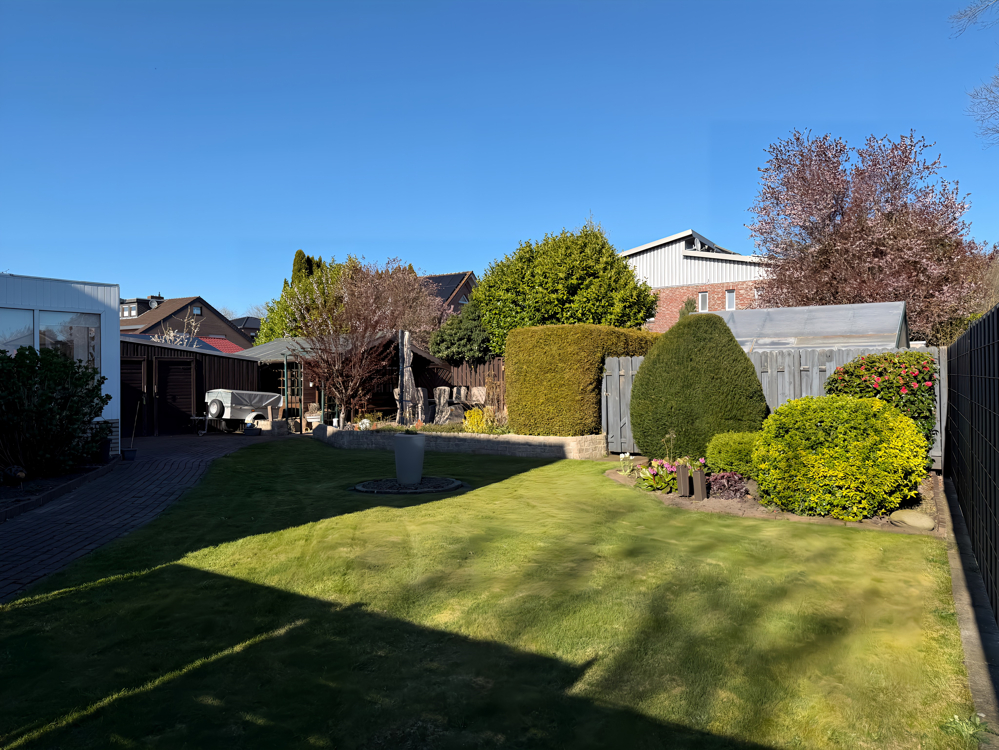 Dieses äußerst gepflegte und kontinuierlich modernisierte Einfamilienhaus aus dem Jahr 1982 überzeugt mit einer großzügigen Wohnfläche von ca. 166 m² sowie zusätzlicher Nutzfläche von ca. 41 m² – eingebettet auf einem liebevoll angelegten Grundstück mit ca. 855 m². Bereits beim Betreten wird deutlich: Diese Immobilie wurde mit viel Sorgfalt instand gehalten und geschmackvoll weiterentwickelt. Das Erdgeschoss bietet ein harmonisches Wohnambiente mit Fußbodenerwärmung in Küche, Wohn- und Essbereich sowie im Badezimmer – perfekt für ein behagliches Wohngefühl zu jeder Jahreszeit. Die moderne Küche (ca. 2015) fügt sich nahtlos in das Gesamtbild ein und bildet gemeinsam mit dem angrenzenden Sommergarten einen wunderbaren Lebensmittelpunkt für den Alltag und gesellige Stunden. Zahlreiche Modernisierungen unterstreichen den hervorragenden Zustand: Erneuerte Bodenbeläge in Küche, Bad und Flur, stilvolle Innentüren im Erdgeschoss sowie ein modernisiertes Badezimmer (jeweils ca. 2015) verleihen dem Haus eine zeitgemäße und gepflegte Ausstrahlung. Die Heizungsanlage wurde erst 2023 erneuert und sorgt für eine effiziente Wärmeversorgung (aktuell Leasing – eine Ablösung ist bei Bedarf möglich). Im Obergeschoss erwartet Sie ein echtes Highlight: eine großzügige Sauna mit integrierter Dusche – Ihre private Wellness-Oase direkt im eigenen Zuhause. Ergänzt wird dieser Bereich durch ein weiteres Badezimmer, wodurch auch für Familien oder Gäste ein hoher Wohnkomfort gewährleistet ist. Der Außenbereich steht dem Innenraum in nichts nach: Der liebevoll gepflegte Garten bietet viel Platz zum Entspannen, Spielen oder Gärtnern. Eine zusätzliche Außenterrasse, ein Gewächshaus für den Eigenanbau sowie ein praktischer Partyschuppen schaffen vielfältige Nutzungsmöglichkeiten. Abgerundet wird das Angebot durch einen Garagenstellplatz. Diese Immobilie vereint großzügiges Wohnen, hochwertige Ausstattung und einen Außenbereich mit echtem Wohlfühlcharakter – ein Zuhause, das auf den ersten Blick begeistert und langfristig überzeugt.