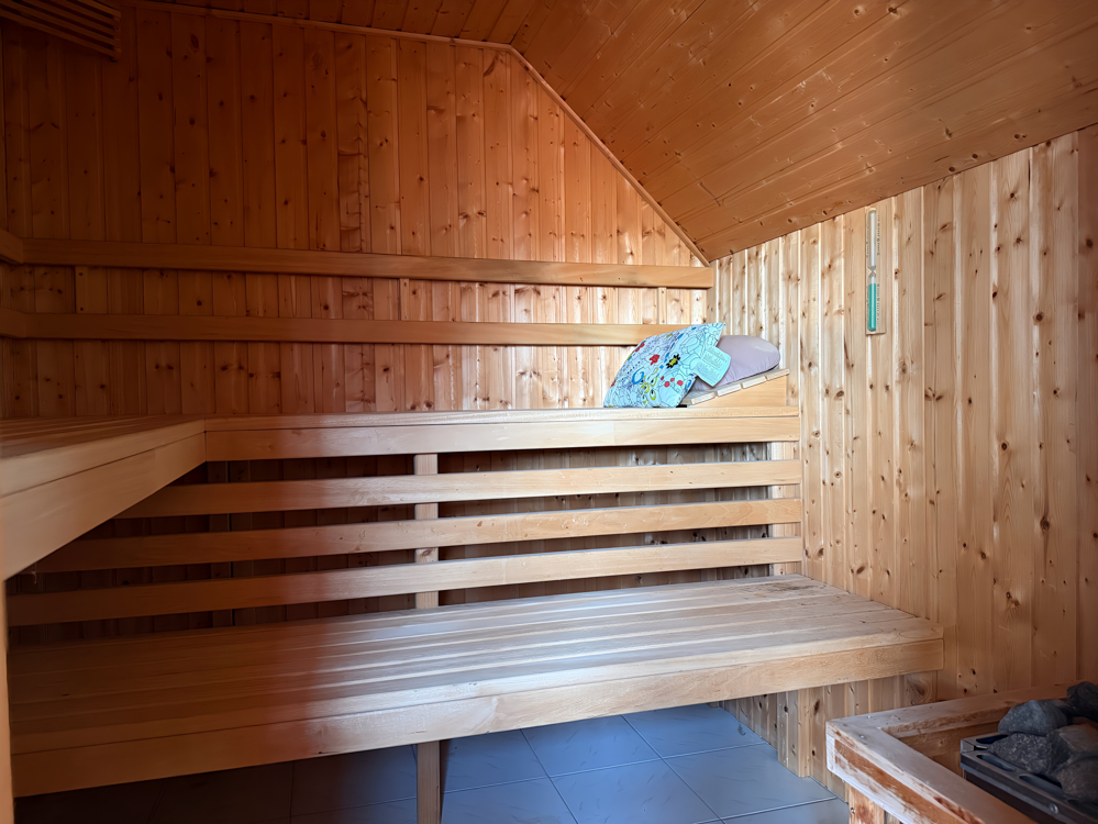Obergeschoss - Flur: ca. 9,4 m2 - Schlafen 1: ca. 15,8 m2 - Schlafen 2: ca. 9,2 m2 - Saunaraum: ca. 21,3 m2 - Bad: ca. 6,2 m2