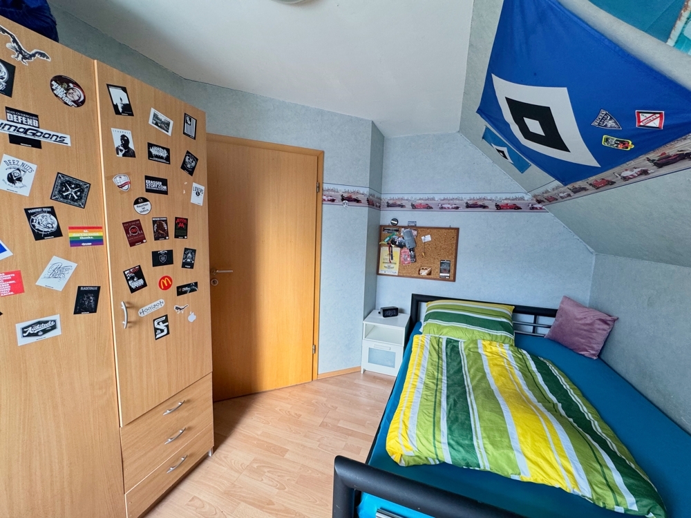 Das Obergeschoss überzeugt mit drei Schlafzimmern, die sich individuell als Kinder-, Arbeits- oder Gästezimmer nutzen lassen. Das Badezimmer ist mit Badewanne, Dusche und Doppelwaschbecken ausgestattet und bietet damit modernen Wohnkomfort.