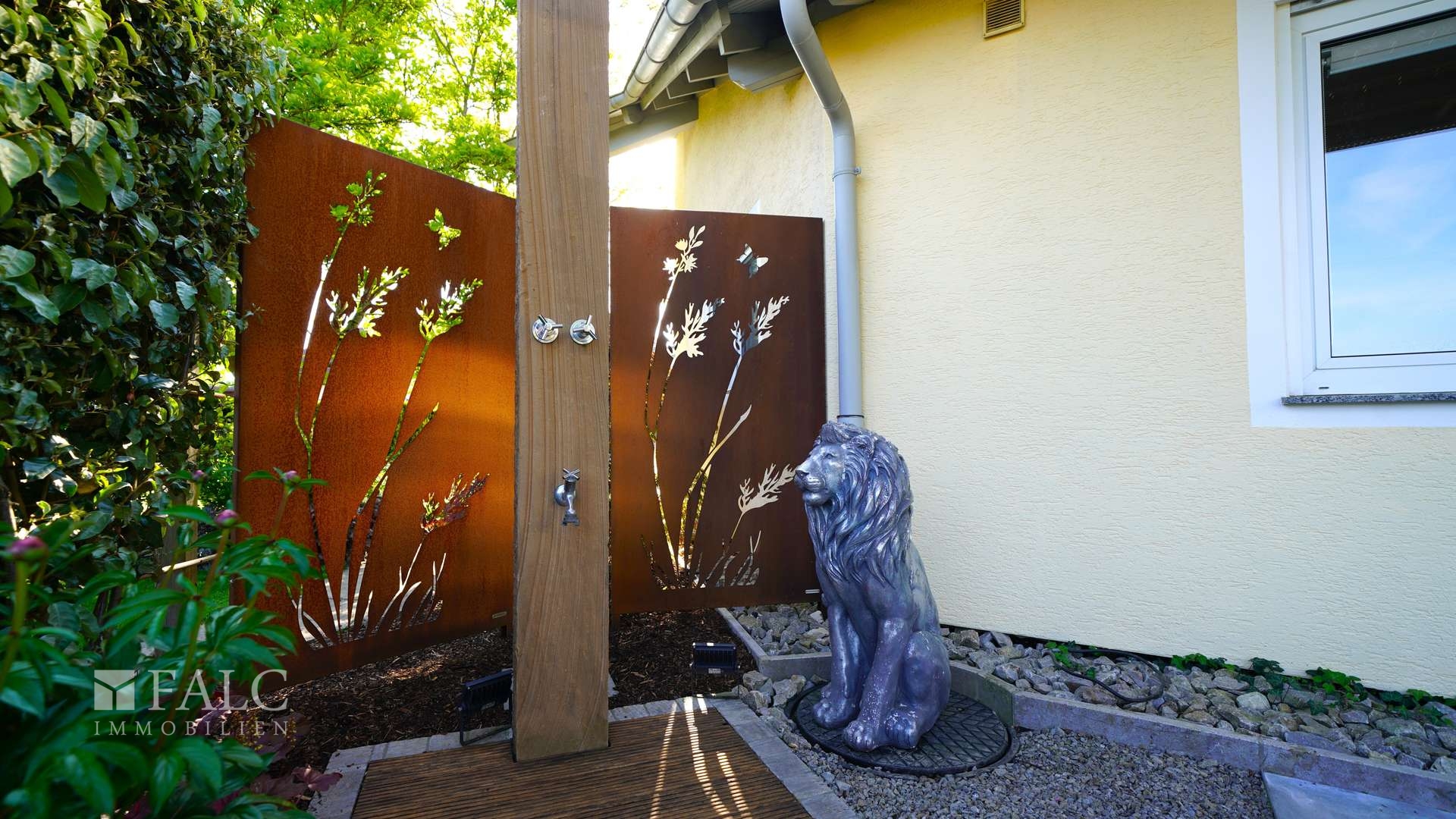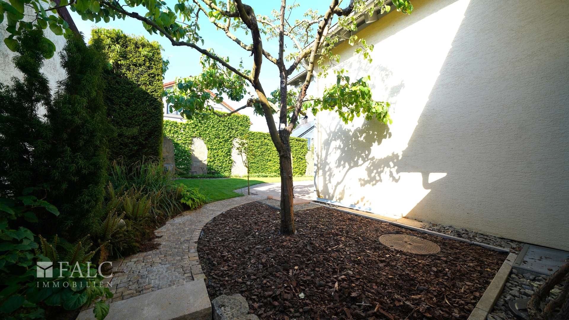 Ob Sie die frische Luft einer frisch gemähten Wiese genießen, den Grillabend oder die Familienfeier planen, an heißen Sommertagen die Außendusche mit Kalt- und Warmwasser genießen oder als Hobbygärtner Ihr blühendes Reich pflegen – hier sind Ihrer Fantasie keine Grenzen gesetzt. Im Garten finden Sie neben einem japanischen Ahorn, einem prächtigen Magnolienbaum, einer Gold-Gleditschie, einem Quittenbaum und einer Hecke aus Buchsbaum und Eiben auch seltene Pflanzen wie den Kugel-Trompetenbaum. Weitere Highlights sind das duftende Kräuter-Hochbeet mit Rosmarin und Salbei sowie die verschiedenen Ziergräser, wie Blauschwengel und Bambus. Die kleine Sitzgruppe neben dem plätschernden Wasserfall, der vorbereitete Stromanschluss für einen Whirlpool und die beiden Regenwassertanks mit 3.000 Litern zur Rasenbewässerung über eine Gardena-Bewässerungsanlage und mit 5.000 Litern für die weitere Gartenbewässerung mit einer weiteren, neuen Gardena-Bewässerungsanlage runden das Angebot perfekt ab.