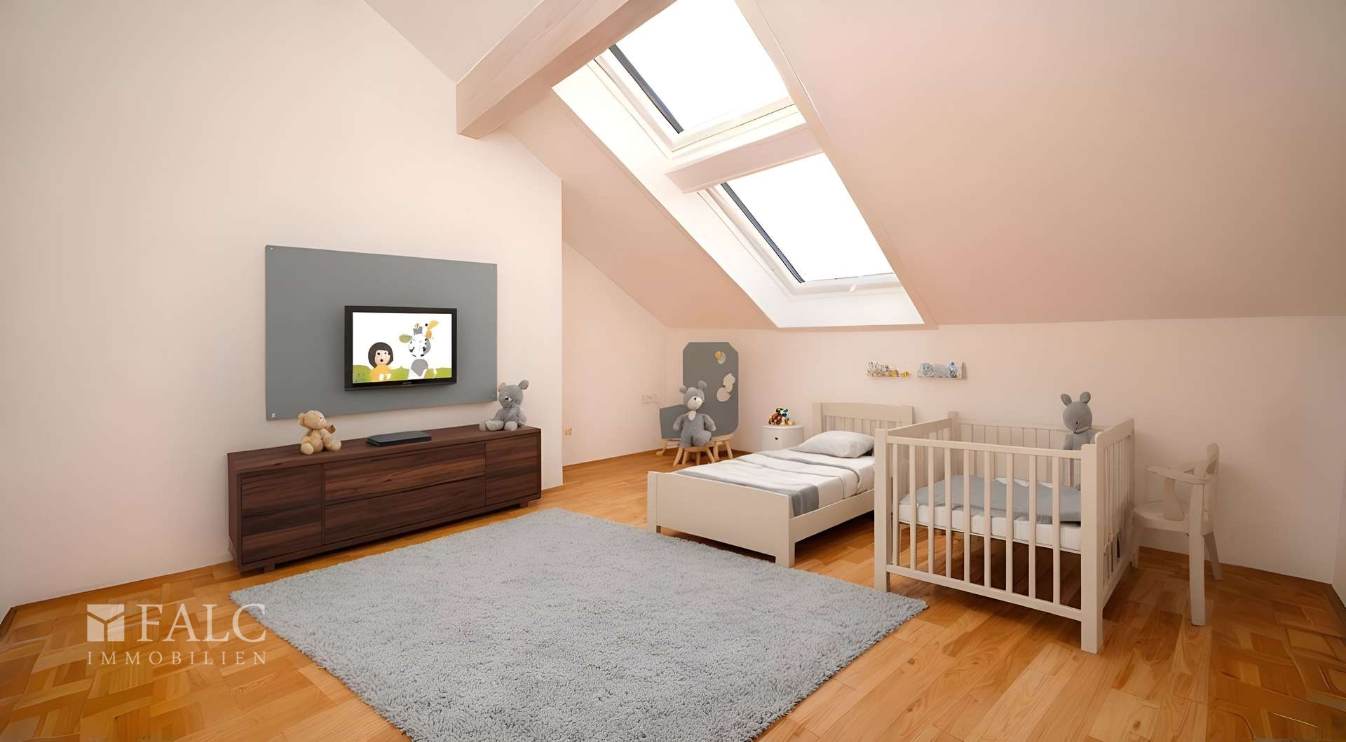 Am Abend lockt der Schlafbereich im Dachgeschoss, den Sie über die elegante, offene Buche-Treppe erreichen. Vier helle, freundliche Zimmer stehen bereit, um von Ihnen ganz nach Ihren Wünschen eingerichtet zu werden. Ob als gemütlicher Rückzugsort für die Eltern zum Entspannen und Träumen, als Spielparadies für die Kleinen oder als Büro bzw. Gästezimmer – hier finden Sie ganz nach Bedarf den perfekten Raum für Ihre individuellen Vorstellungen.