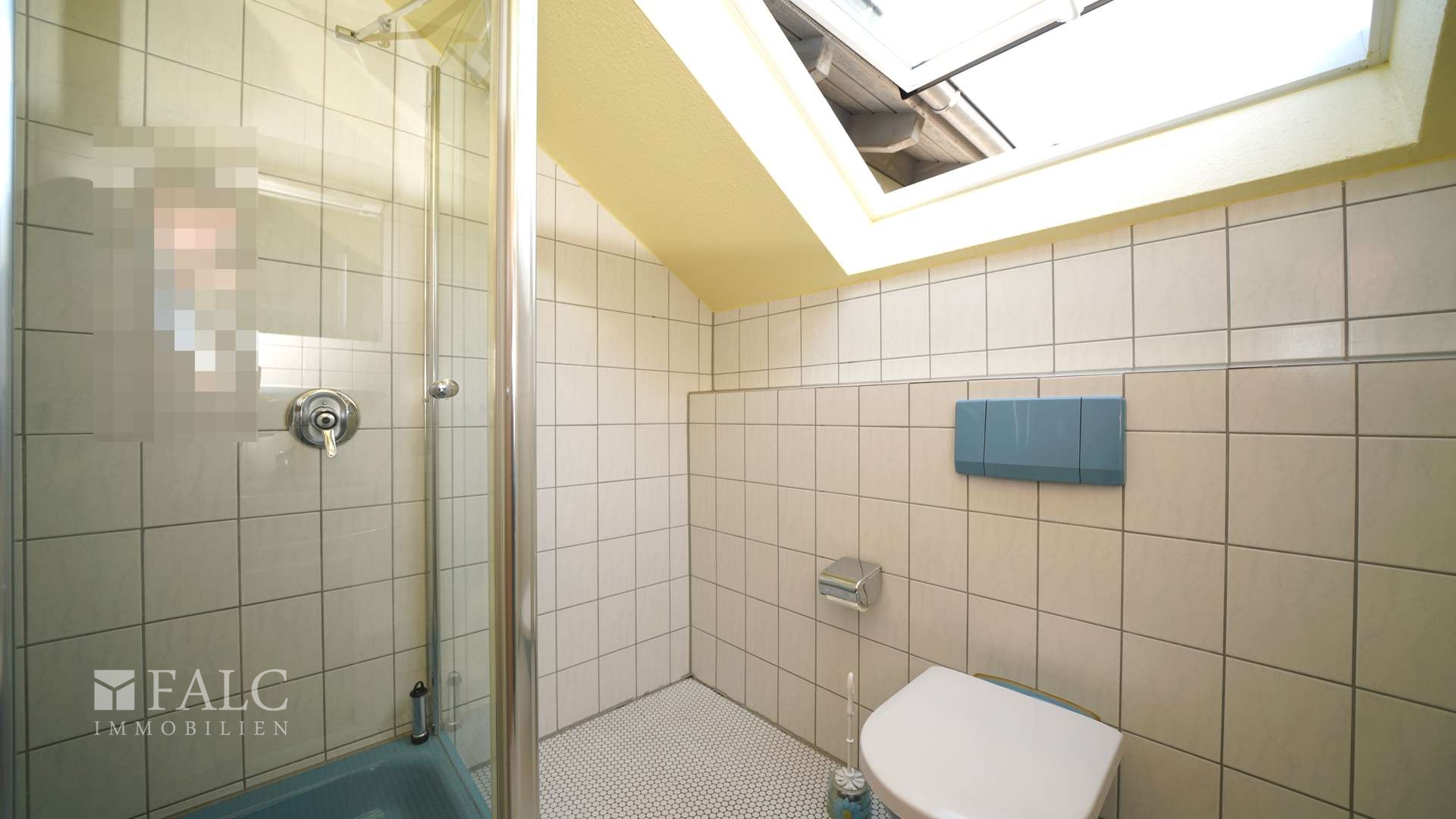 Auch auf dieser Etage erwartet Sie ebenfalls ein Badezimmer, ausgestattet mit einer nahezu bodenebenen Dusche, einem WC, einem Waschbecken und natürlich Tageslicht, das durch ein Dachfenster strömt – so macht das Stylen am Morgen richtig Freude!