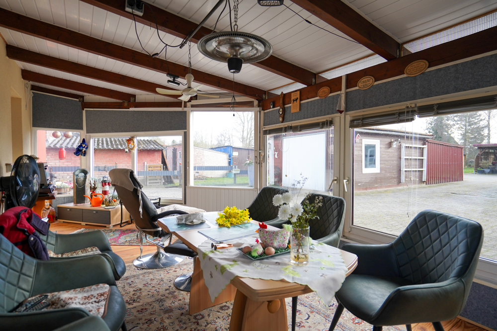 Abgerundet wird das Angebot durch einen Doppelcarport, eine Garage sowie mehrere Nebengebäude, die vielseitige Nutzungsmöglichkeiten und zusätzlichen Stauraum bieten.