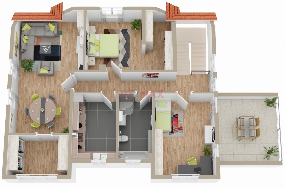 Aufteilung: •8 wunderschöne Wohn- Schlafzimmer •Große Küche mit Kochinsel •2. Küche optional möglich im Obergeschoss •Auf allen 3 Etagen befindet sich ein Badezimmer mit WC •Zudem gibt es noch 2 separate WCs •Schicke Ankleide •Gemütlicher Wintergarten •Terrasse zum Entspannen •Begehbares Flachdach ca. 25 m² (Ausbau zur Dachterrasse möglich)