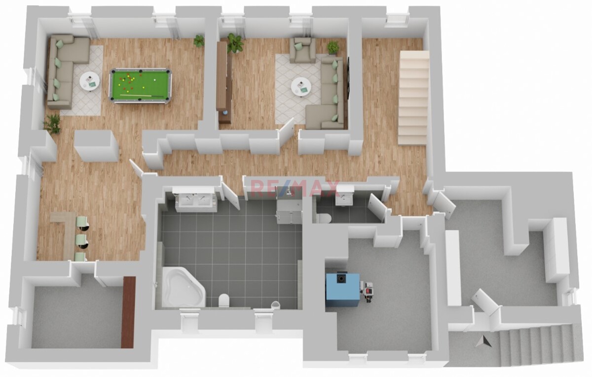 Im voll ausgebauten Untergeschoss finden Sie: •Einen Weinkeller •Freizeitraum mit eingebauter Bar •Billardraum •Ein großes Zimmer, ideal zum Beispiel als Fitnessraum •Voll ausgestattetes Badezimmer mit Whirlpool-Badewanne und Dusche •Separates WC •Wasch- und Trockenraum •Sowie einen weiteren praktischen Raum zur freien Nutzung