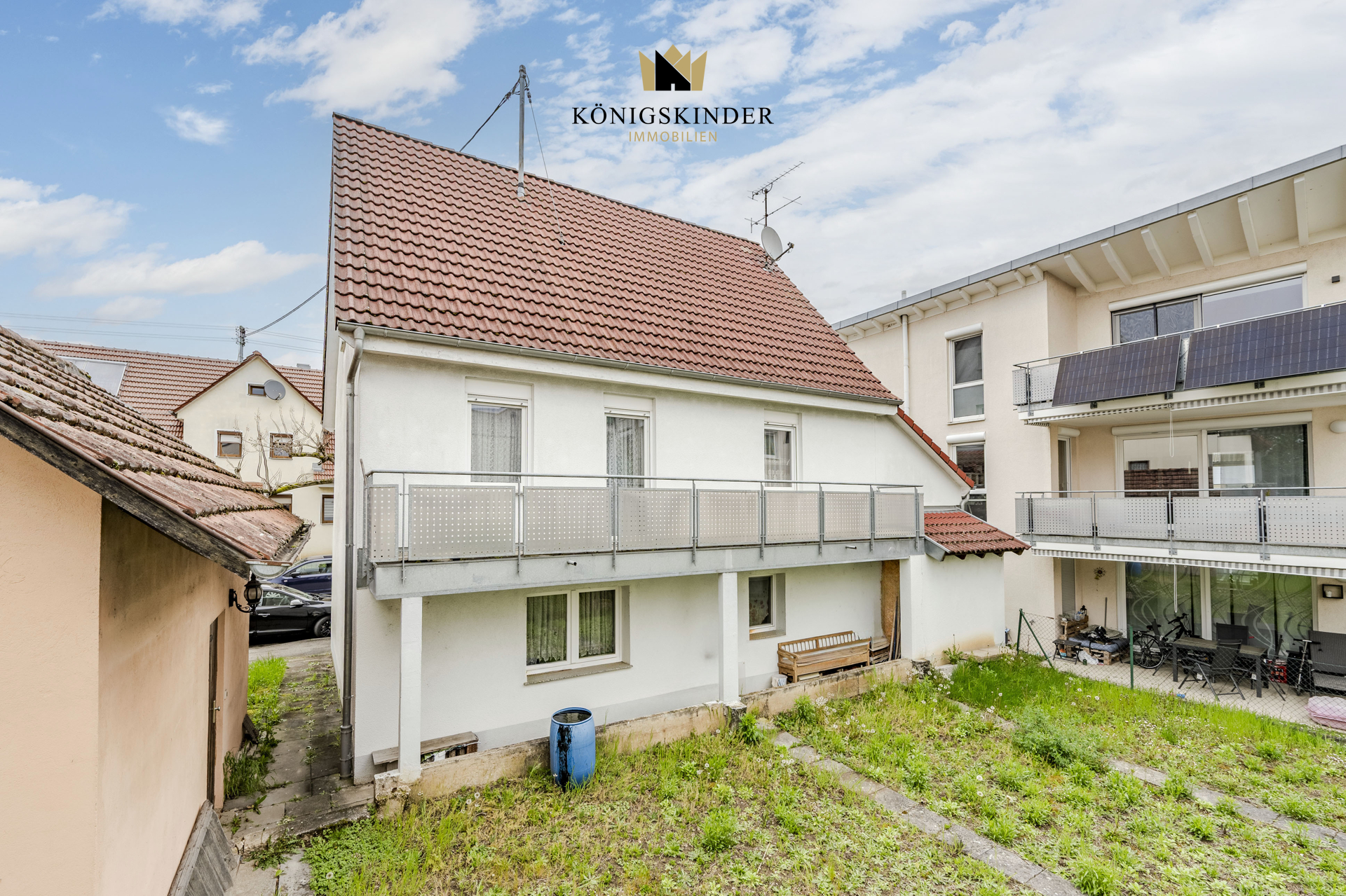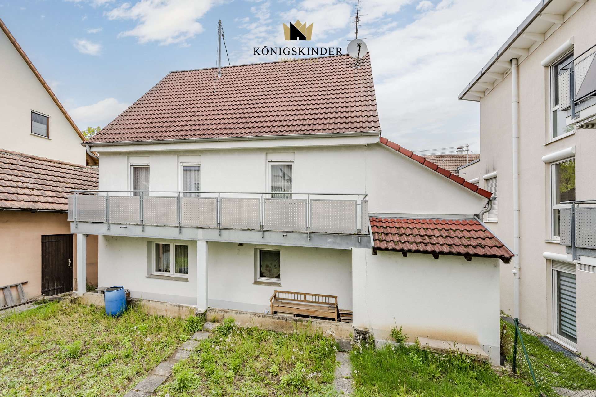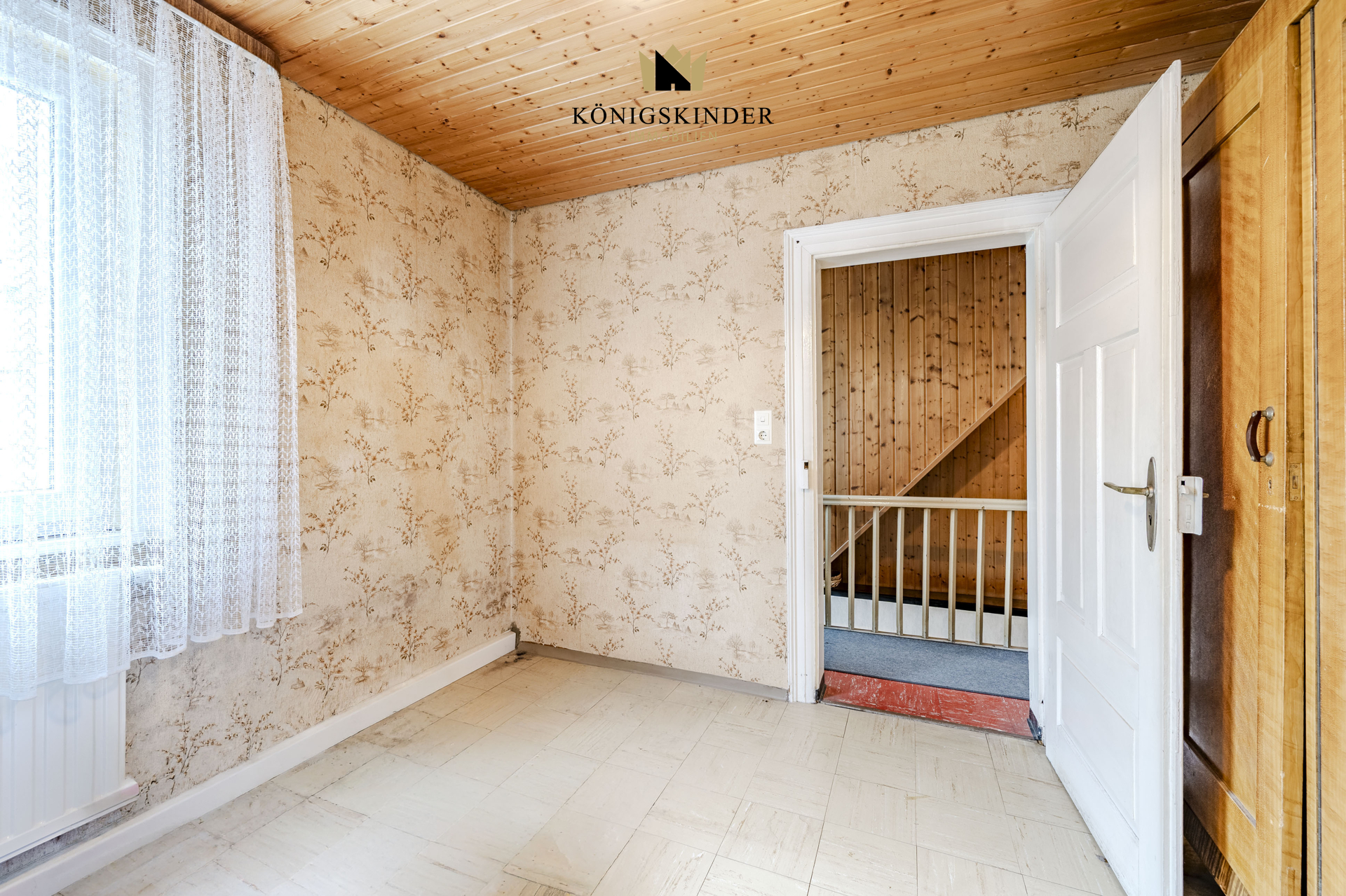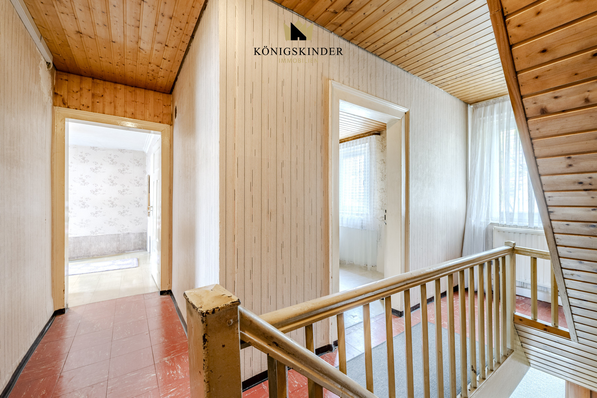 Über eine schmale Holztreppe gelangen Sie ins Obergeschoss. Vier Zimmer bieten hier flexiblen Raum für die Familie oder das Home-Office. Ein echtes Highlight ist der Balkon, der sich über die gesamte Hausbreite erstreckt – der perfekte Logenplatz mit Blick in den eigenen Südgarten. Ein kleiner Geheimtipp: Unter dem aktuellen Bodenbelag schlummern noch die alten Holzdielen und warten nur darauf, wieder gezeigt zu werden.
