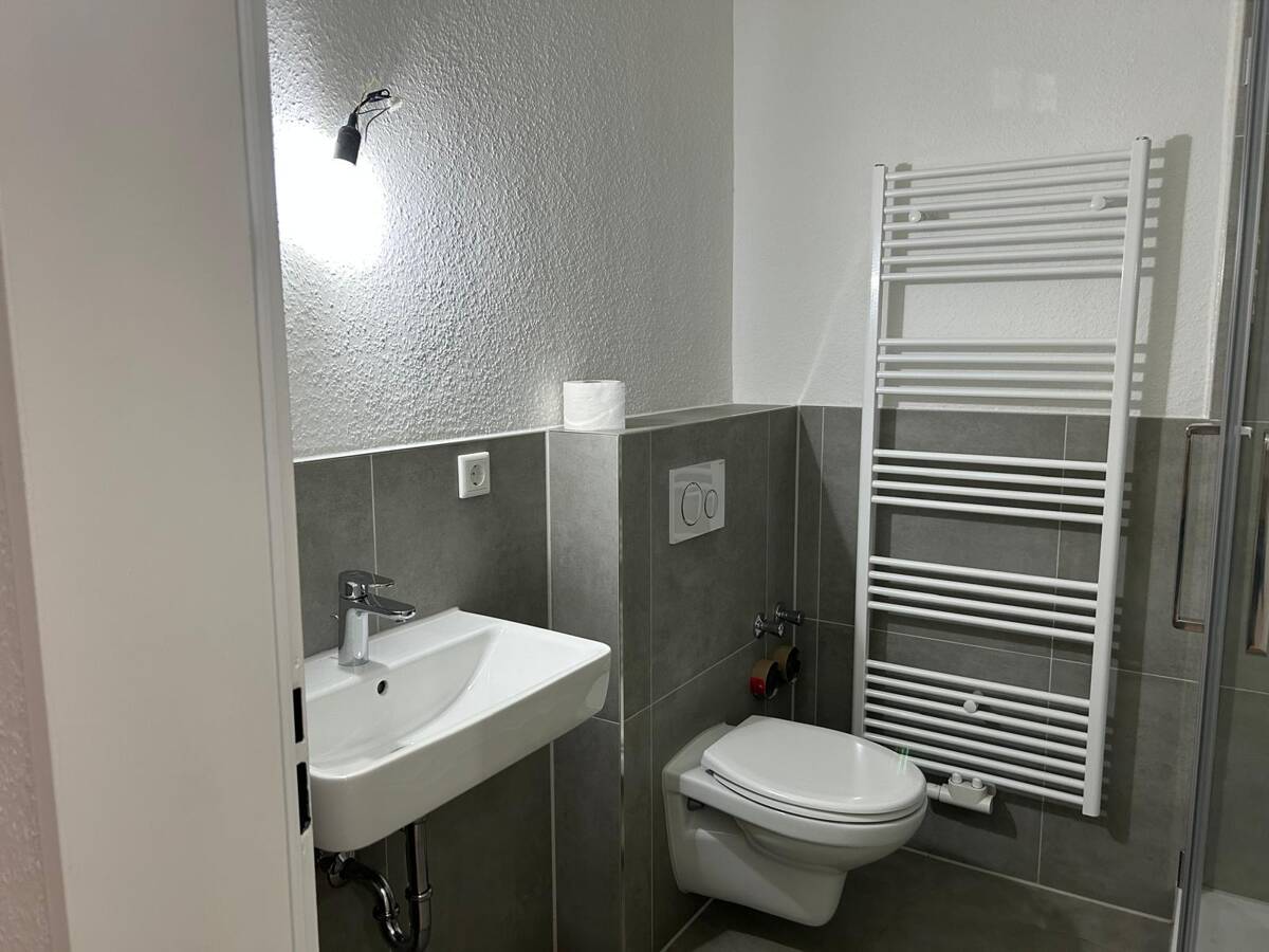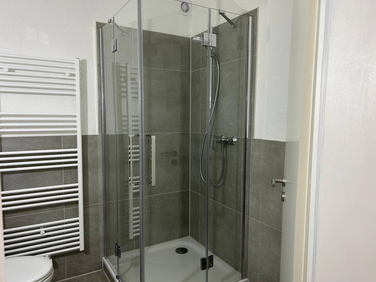 Das stylische Bad ist mit einer ebenerdigen Dusche ausgestattet. Diese Wohnmöglichkeit eignet sich ideal Paare, die die Ruhe einer gut gelegenen Nachbarschaft schätzen und dennoch nicht auf eine zentrale Anbindung verzichten möchten.