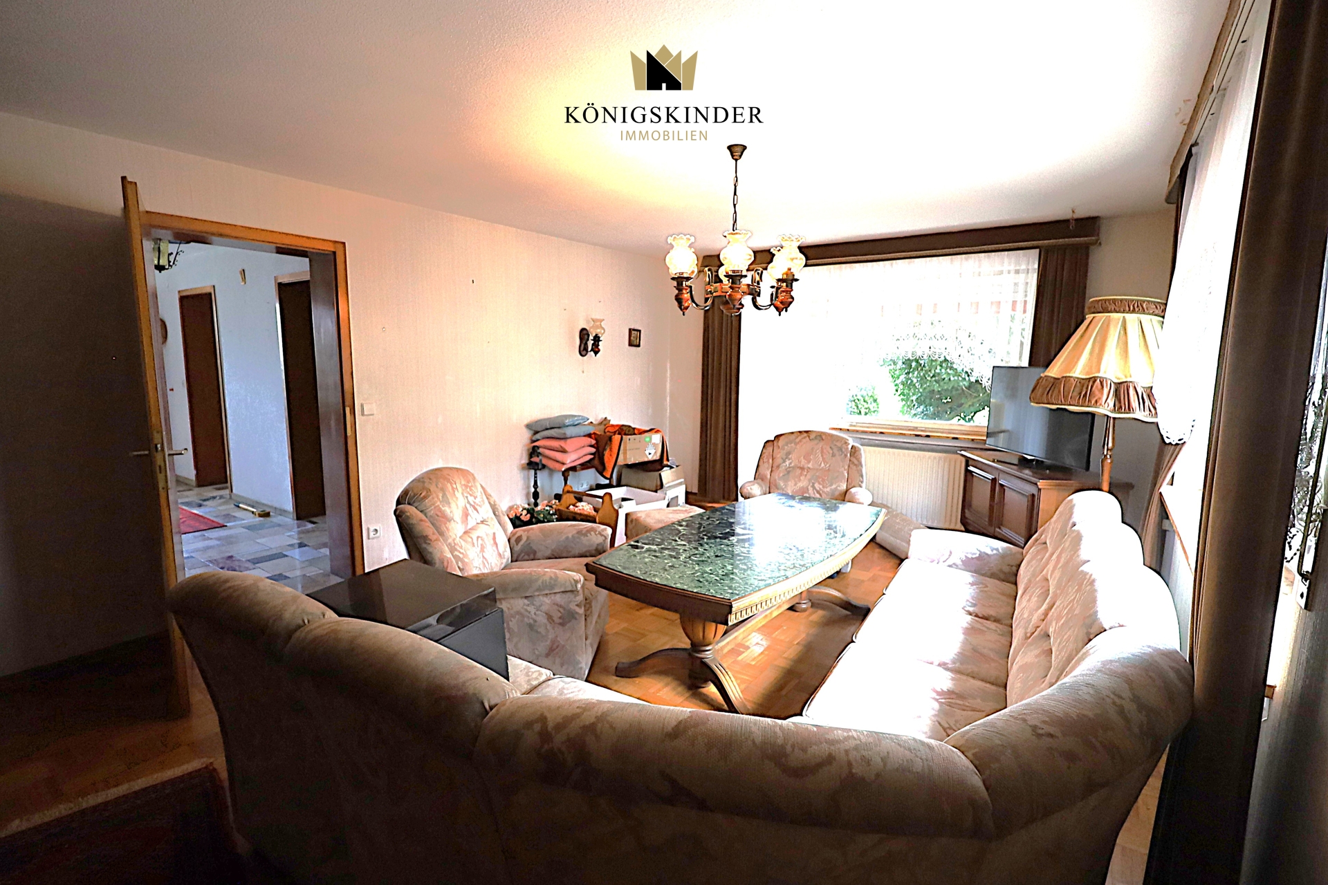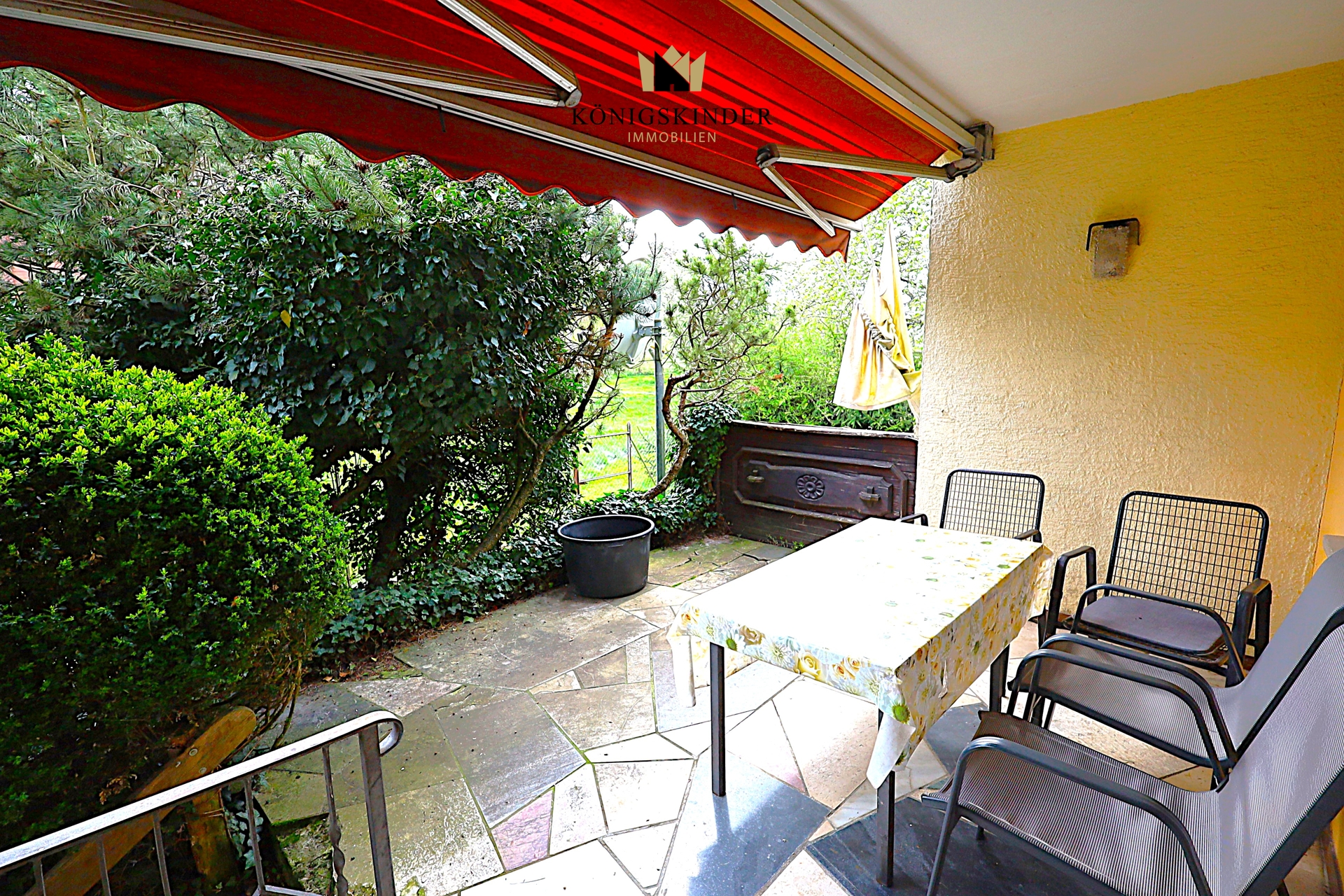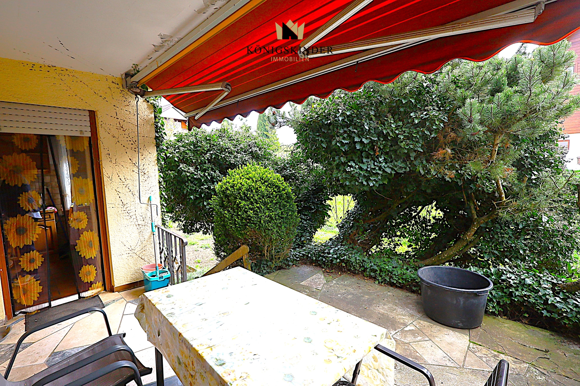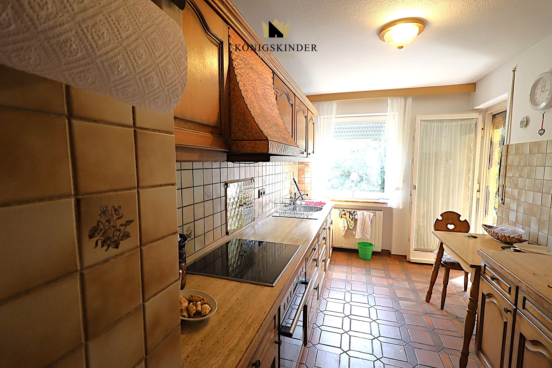 Im Erdgeschoss befindet sich das Wohnzimmer, zwei Schlafzimmer, Bad und Gäste-WC, Küche und das separate Esszimmer. Von der Küche und vom Wohnzimmer haben Sie Zugang zur überdachten Süd-Terrasse, ein Schlafzimmer hat Ausgang zu einem später angebauten Balkon - hier können Sie die Abendsonne genießen.