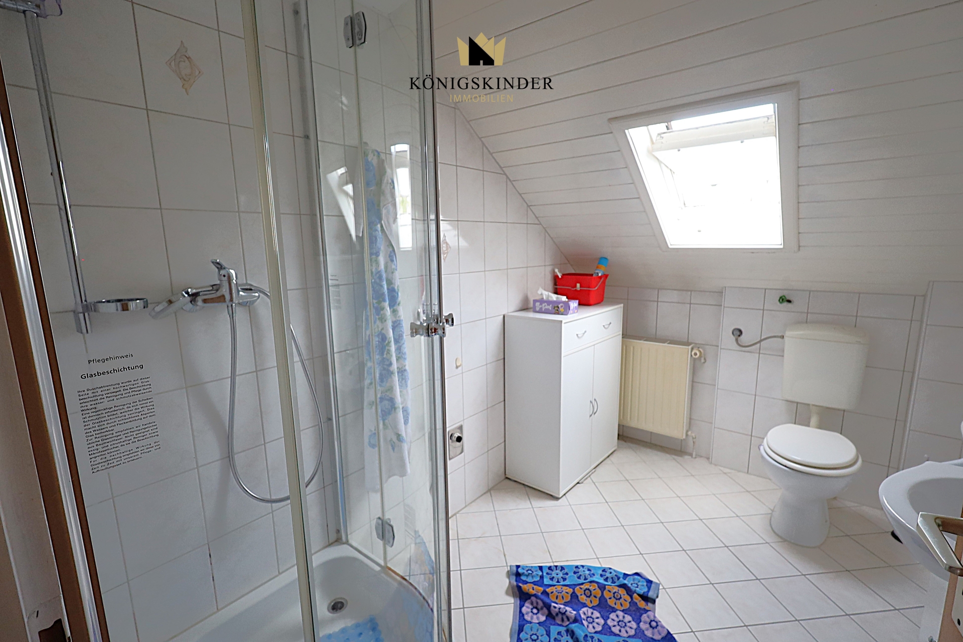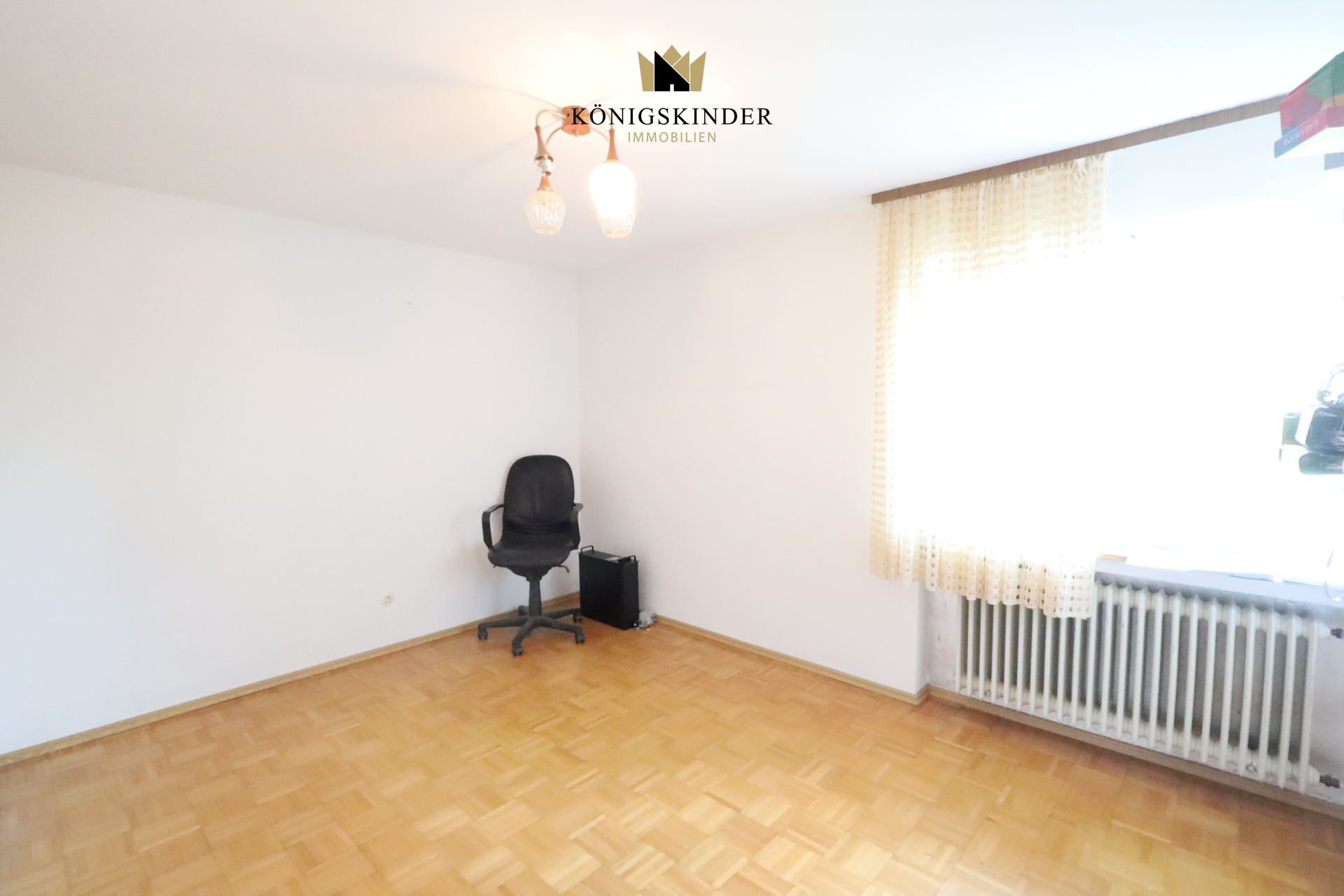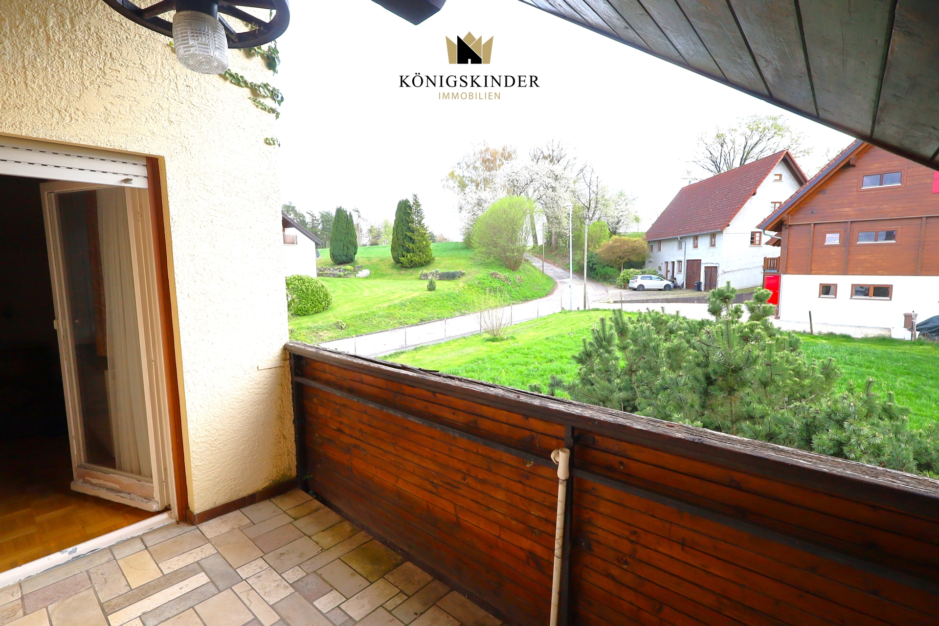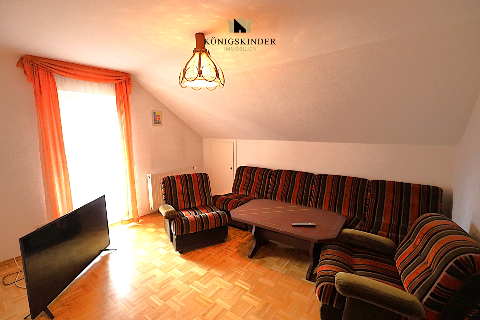 Im Obergeschoss stehen Ihnen vier Zimmer, eine Küche und ein Bad zur Verfügung. Zwei Zimmer haben Ausgang zum überdachten Süd-Balkon.