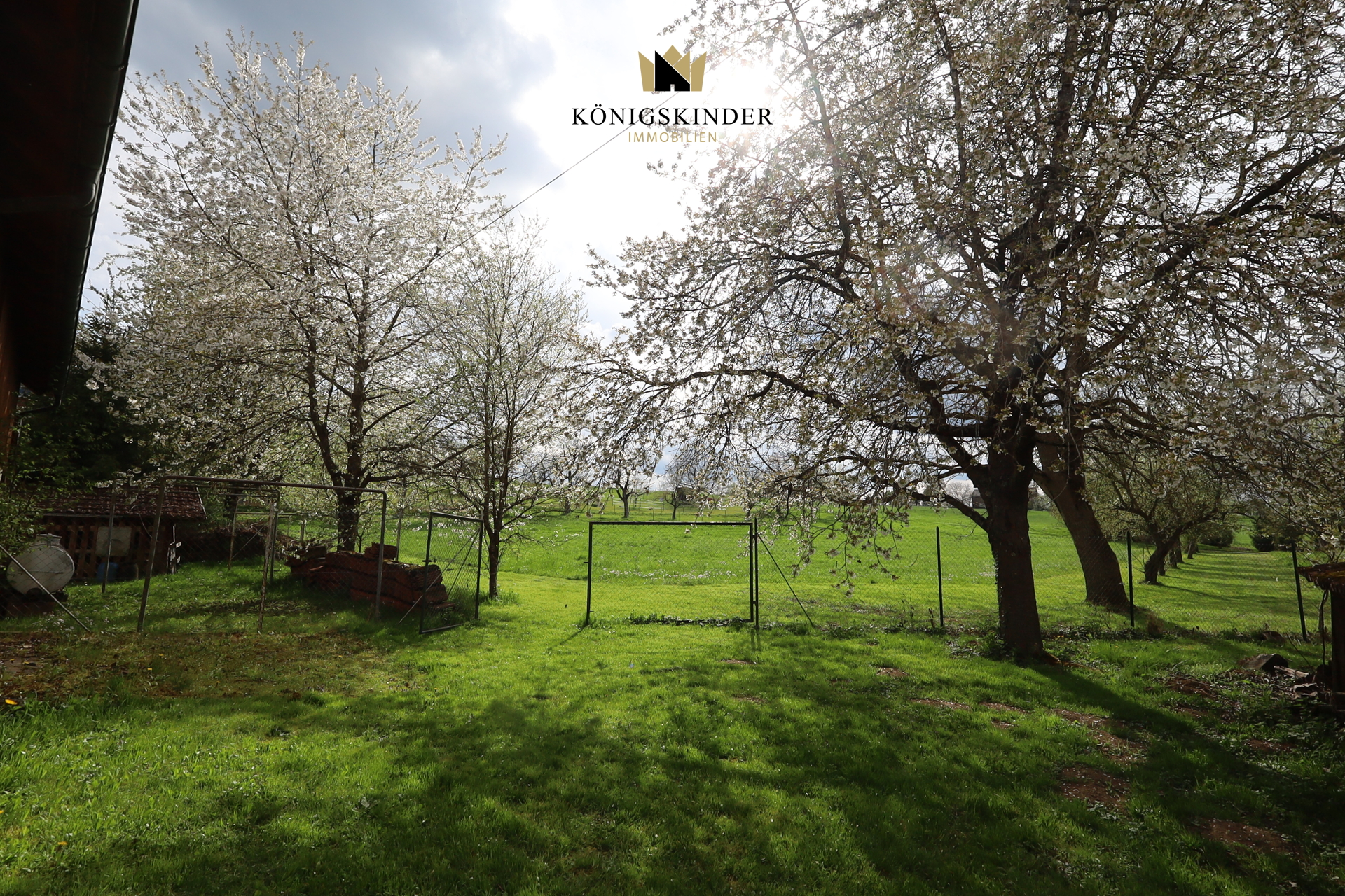 Dieses Anwesen ist ein kleines Paradies. Das Grundstück ist Teil einer größeren Liegenschaft - das Grünland hinter dem bereits vermessenen Flurstück (das genaue Maß ist noch nicht bekannt) bleibt unverbaubar.