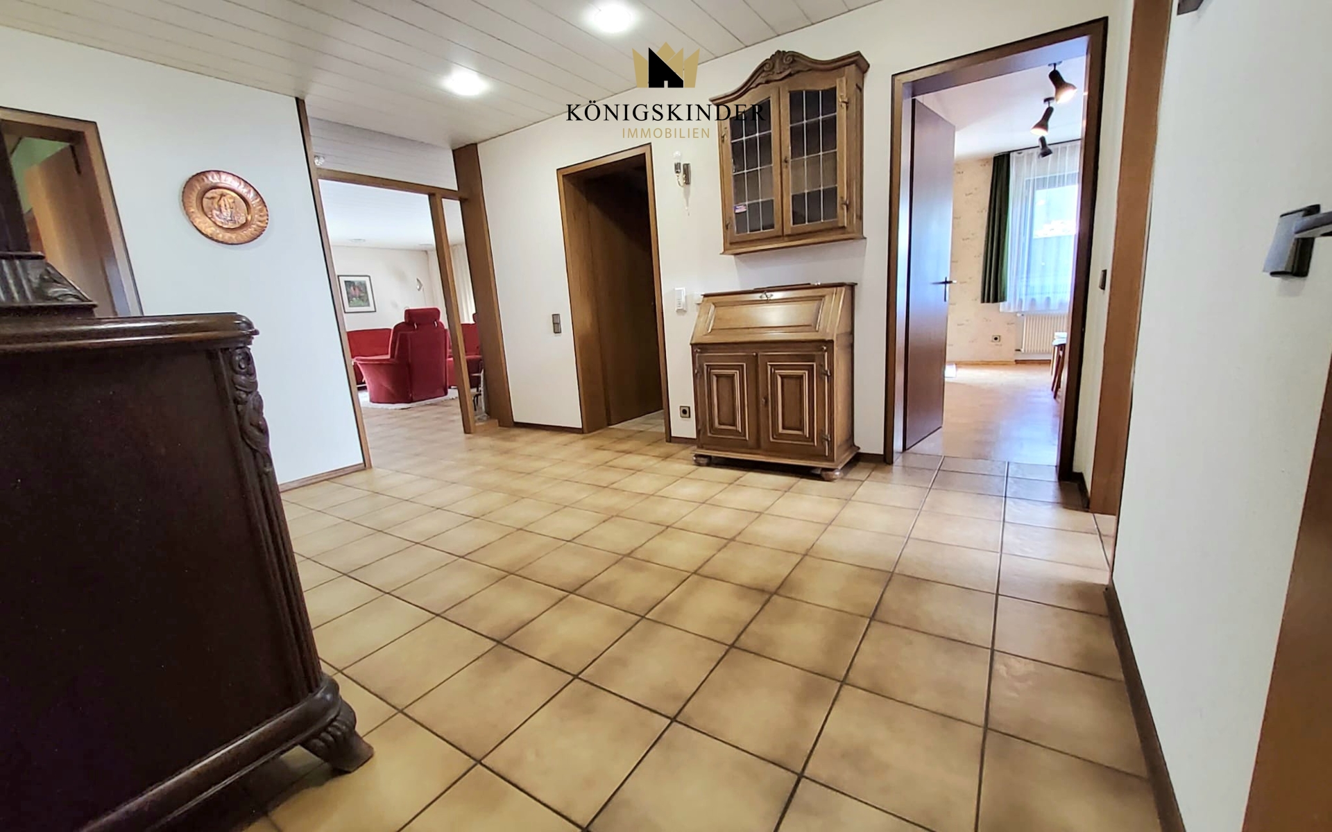 * Große und lichterfüllte 5,5 Zimmer Wohnung in 2-FH * Sonnenterrasse mit 8,50 Breite, el. Markise und Minigärtchen * Große Wohnküche mit mehr als 27qm und französischem Balkon * Herrliches, lichtdurchflutetes Wohnzimmer mit rund 31qm u. weiße Holzdecken * Zugang zur Terrasse über große Schiebtür * Großzügige Fensterfronten teils als Flügelfenster * Wohnzimmer mit el. Rollläden ausgestattet * Kaminofen mit gemütlicher Sitzbank * sep. Gäste WC * Großes Tageslichtbad mit Wanne, Dusche, Bidet, WC, Doppelwaschtisch & Handtuchwärmer * Weitläufiges Schlafzimmer, auf Wunsch inkl. hochwertiger Möblierung in Echtholz * Schlafzimmer mit Echtholz-Stäbchenparkett * Fußbodenheizung im Wohnzimmer, Flur, Bad, * Ölzentralheizung * Zusätzlicher Raum im EG als ELW, Büro, Hobby ... * Bad im EG mit Dusche, WC und Waschtisch * Kellerraum * Gem. Waschküche * Gem. Lagerraum * Große Garage mit el. Antrieb und Sender * MEA 5/10 * Grundsteuer: 156,23 € / Quartal