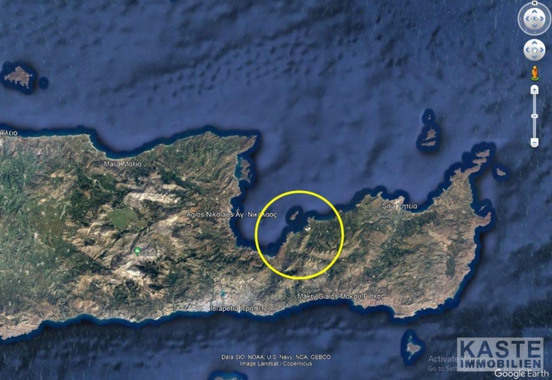 Alle Gebäude auf diesem Grundstück werden einen fantastischen, ununterbrochenen Panoramablick auf das Meer und die Insel haben. Das Grundstück befindet sich direkt oberhalb eines ruhigen Strandes in der Nähe des Dorfes Kavousi. Dieses schöne traditionelle Dorf ist 25 Autominuten von Agios Nikolaos oder 15 Minuten von Ierapetra entfernt. Die Aussicht auf das Meer, die Berge und die Insel ist einfach spektakulär. Es gibt einen Straßenzugang und Wasser- und Stromleitungen sind in der Nähe.