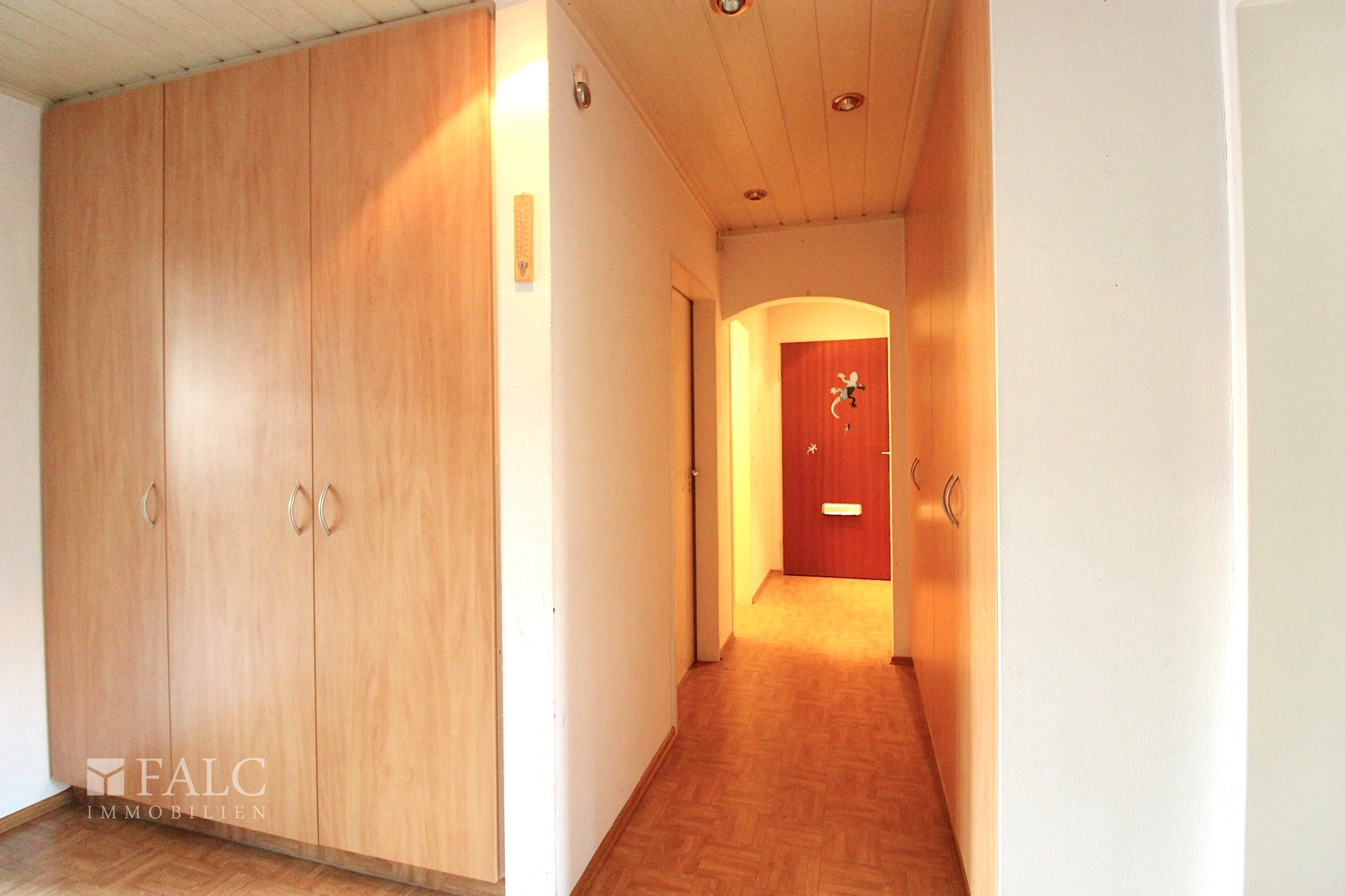 Beim Betreten empfängt Sie ein großzügiger Flur in L-Form, der dank integrierter Einbauschränke viel Platz für Garderobe und Stauraum bietet. Gleich rechts befindet sich die Gäste-Toilette, und direkt daneben das erste Schlafzimmer, das flexibel als Kinderzimmer, Büro oder Gästezimmer genutzt werden kann.