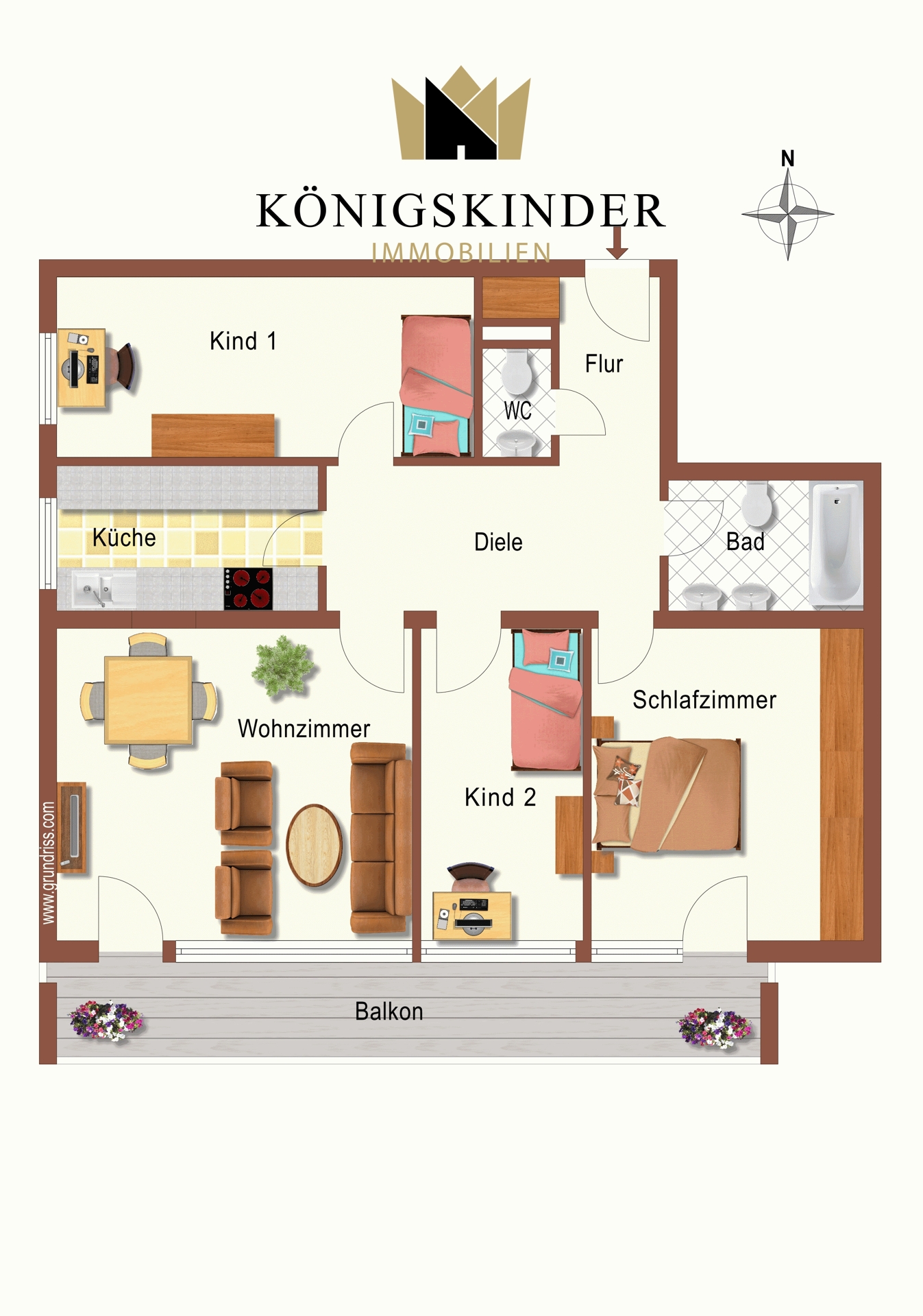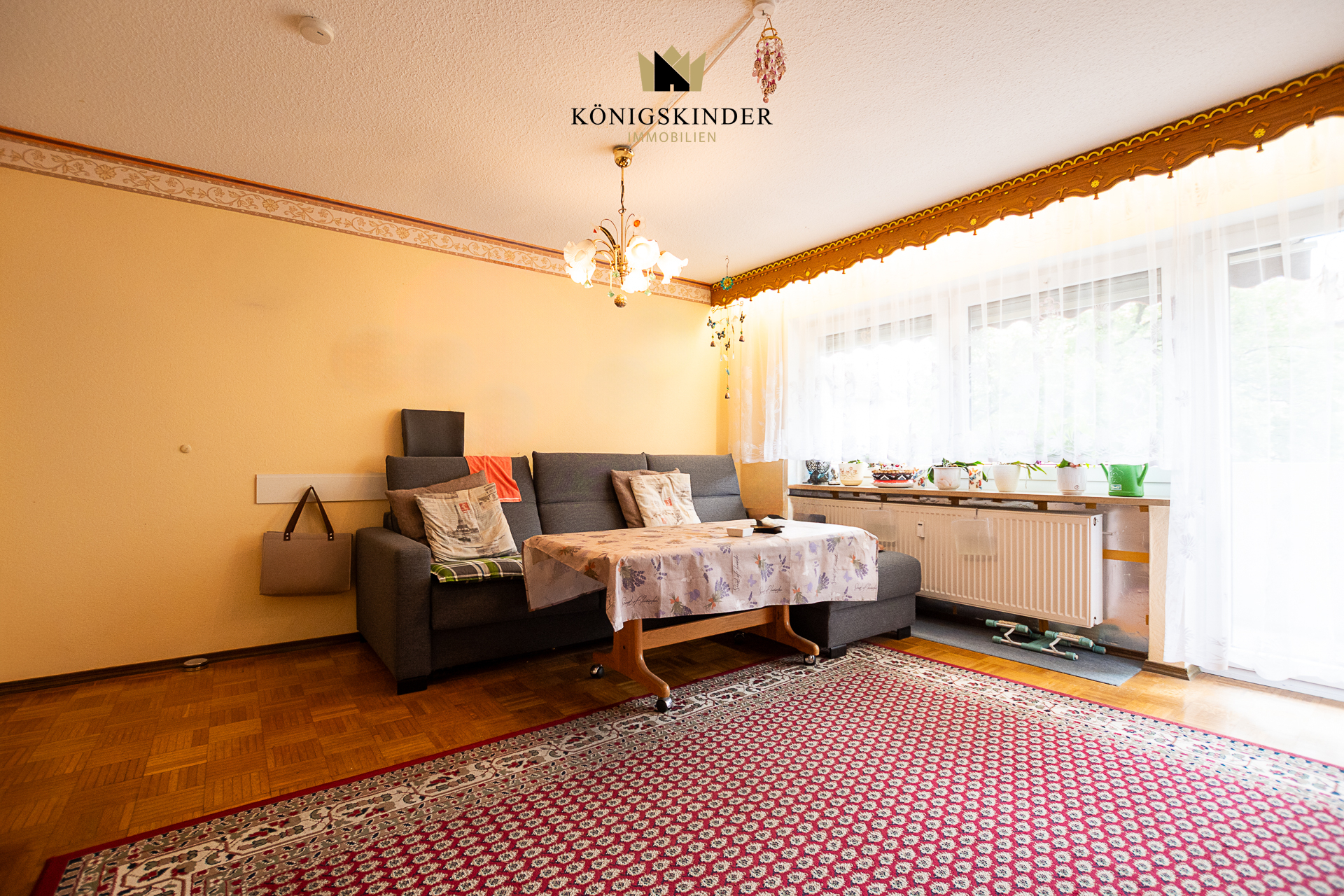 Das geräumige Wohnzimmer bietet direkten Zugang zum großen Balkon, der sich hervorragend für entspannte Stunden im Freien eignet. Die separate Küche bietet ausreichend Platz für einen kleinen Essbereich. Neben dem Wohnzimmer stehen Ihnen drei weitere Zimmer zur Verfügung, die sich flexibel als Schlafzimmer, Arbeitszimmer oder Gästezimmer nutzen lassen.