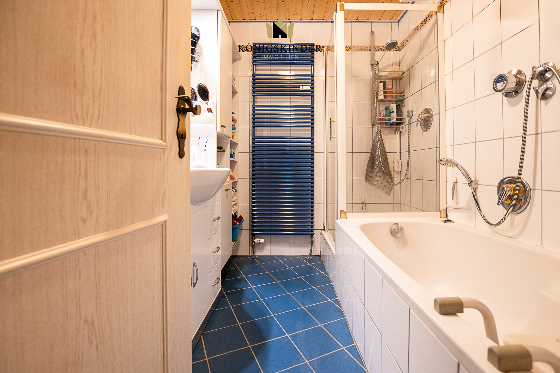 Das Bad ist mit einer Badewanne , einer Dusche und einem Waschbecken ausgestattet, ein separates WC sorgt für zusätzlichen Komfort im Alltag.