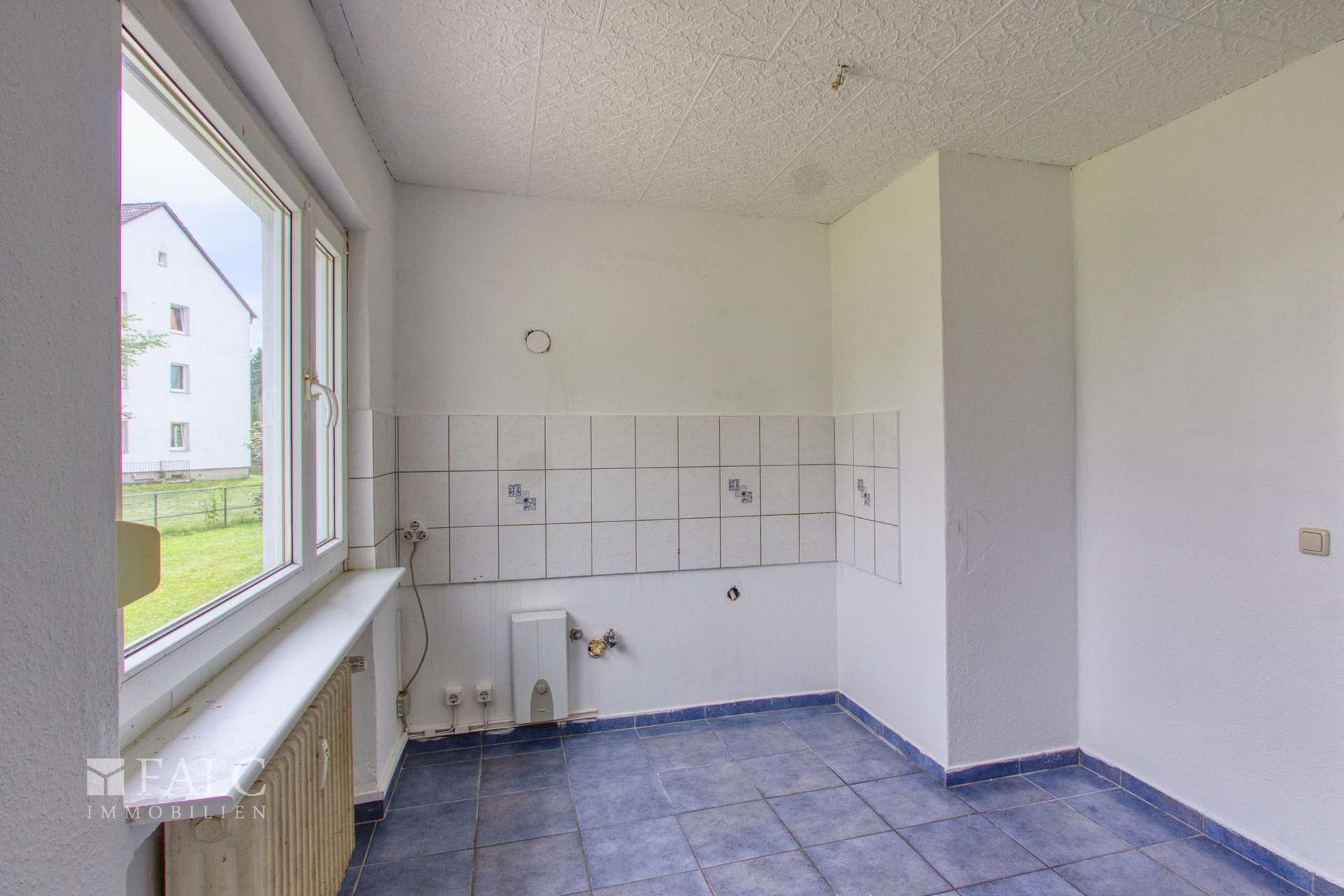 Diese 4-Zimmer-Erdgeschosswohnung mit einer Wohnfläche von ca. 83 qm, einem Balkon und einem separaten Kellerraum bietet praktischen Wohnraum für ein Paar oder eine kleine Familie. Das Objekt wurde gerade frisch gestrichen, Sie müssen nur noch einziehen. Als neuer Eigentümer steht Ihnen auch eine Vermietung frei, so können Sie das Objekt auch als Kapitalanlage nutzen. Sie finden hier ein Wohnzimmer sowie 3 weitere Schlafzimmer vor. Eine gegenüber dem Wohnzimmer liegende geräumige Küche lädt zum Kochen ein, auch Platz zum Essen ist hier vorhanden. Die Wohnung hat ein Bad sowie ein separates WC. Es befinden sich Rollläden an den Fenstern. Zum Entspannen können Sie den Balkon nutzen, der von Wohnzimmer aus erreichbar ist.