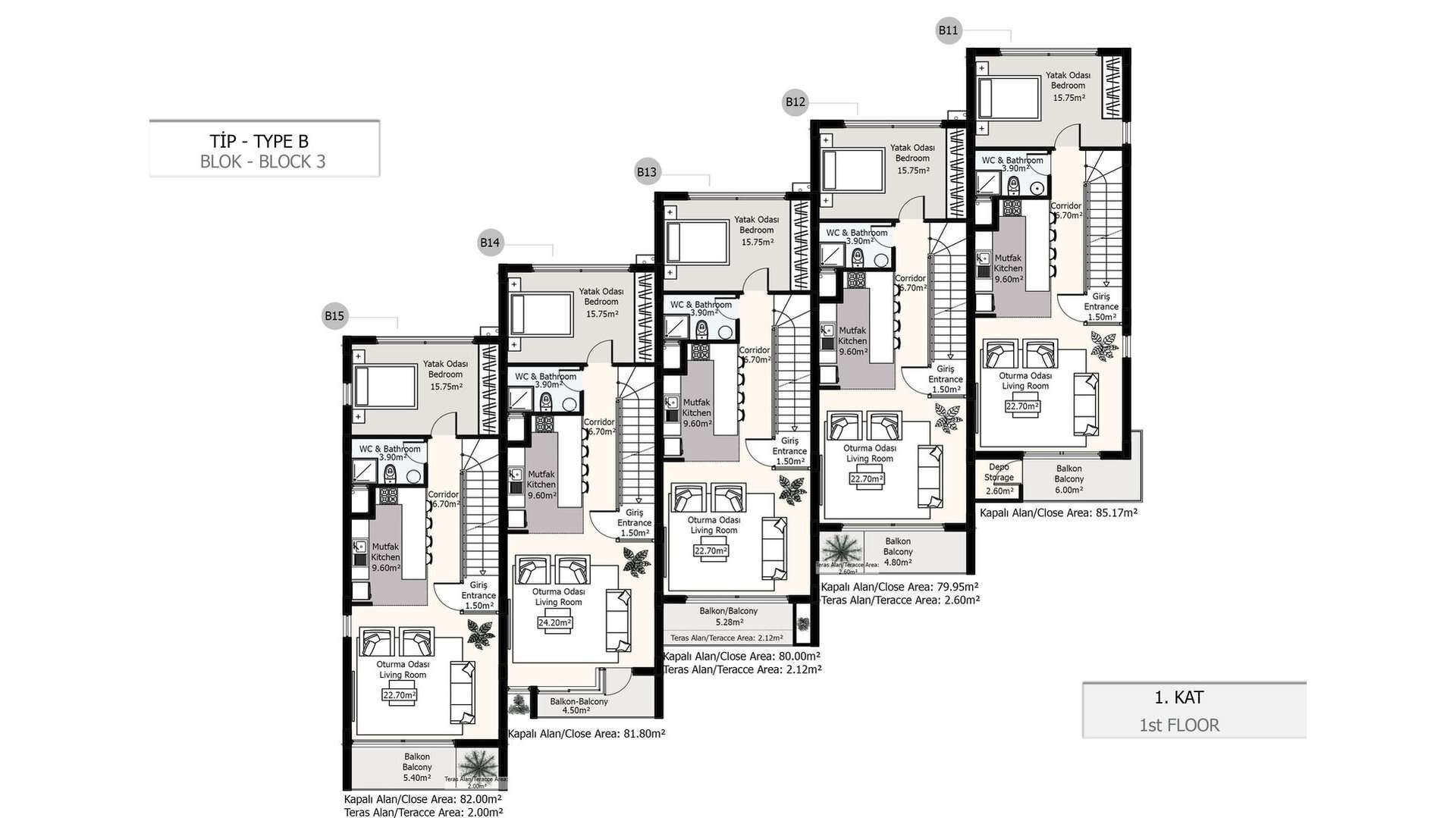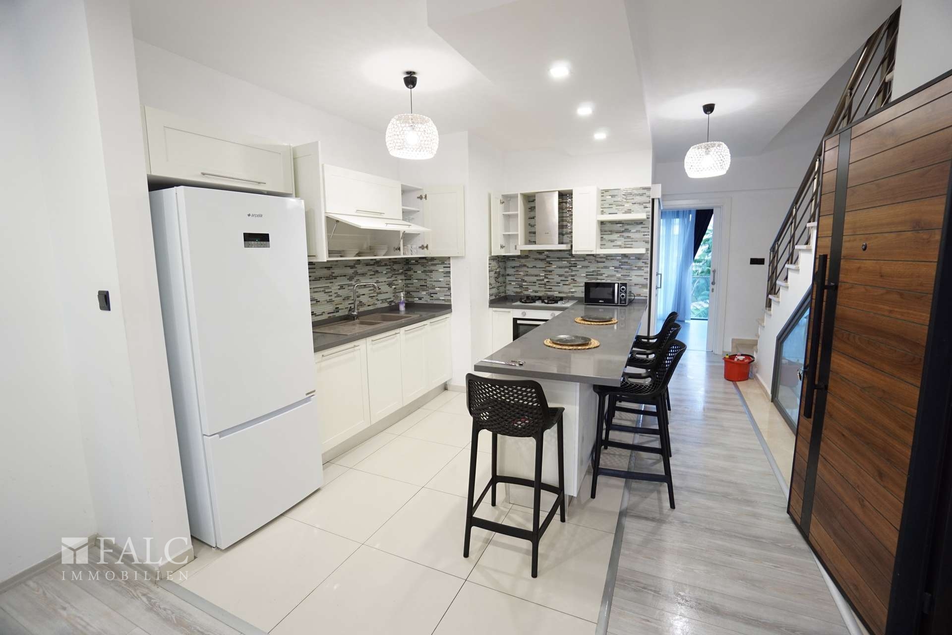 Wir freuen uns, Ihnen dieses exklusive und neuwertige Reihenhaus in Kyrenia zum Kauf anbieten zu dürfen. Das Objekt wurde im Jahr 2022 in Massivbauweise errichtet und verfügt über eine Wohnfläche von 160 Quadratmetern auf zwei Etagen. Mit insgesamt vier Zimmern, drei Schlafzimmern und drei Badezimmern bietet das Haus ausreichend Platz für eine Familie.