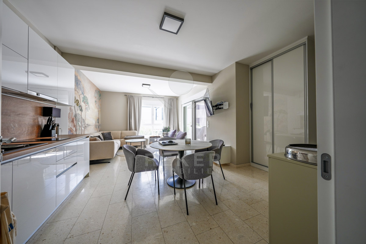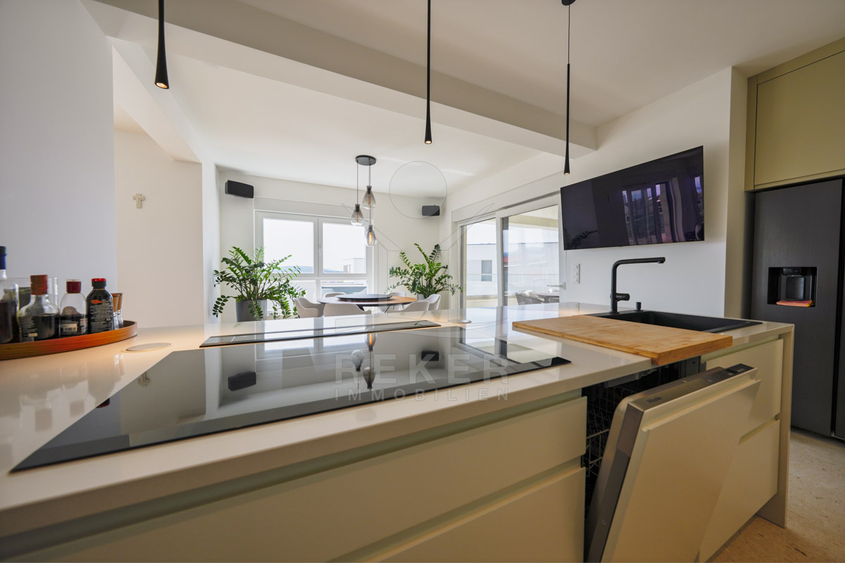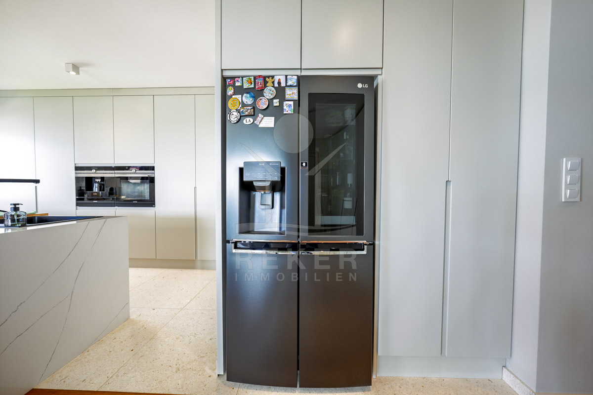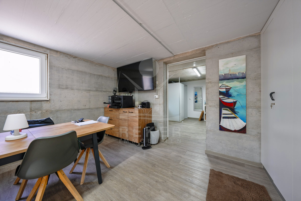 Das 629 m² große Grundstück wirkt gepflegt und offen gestaltet. Mittelpunkt des Außenbereichs ist der 60 m² große Pool (10 × 6 m), vorbereitet für eine Beheizung und damit auch in der Übergangszeit nutzbar. Liegeflächen und eine Außendusche ergänzen diesen Bereich. Der überdachte Grillplatz mit Außenküche und Steingrill schafft Raum für gemeinsame Abende. Direkt daneben ergänzt eine Taverne mit Sommerküche im Untergeschoss den Außenbereich um einen geschützten Aufenthaltsraum.