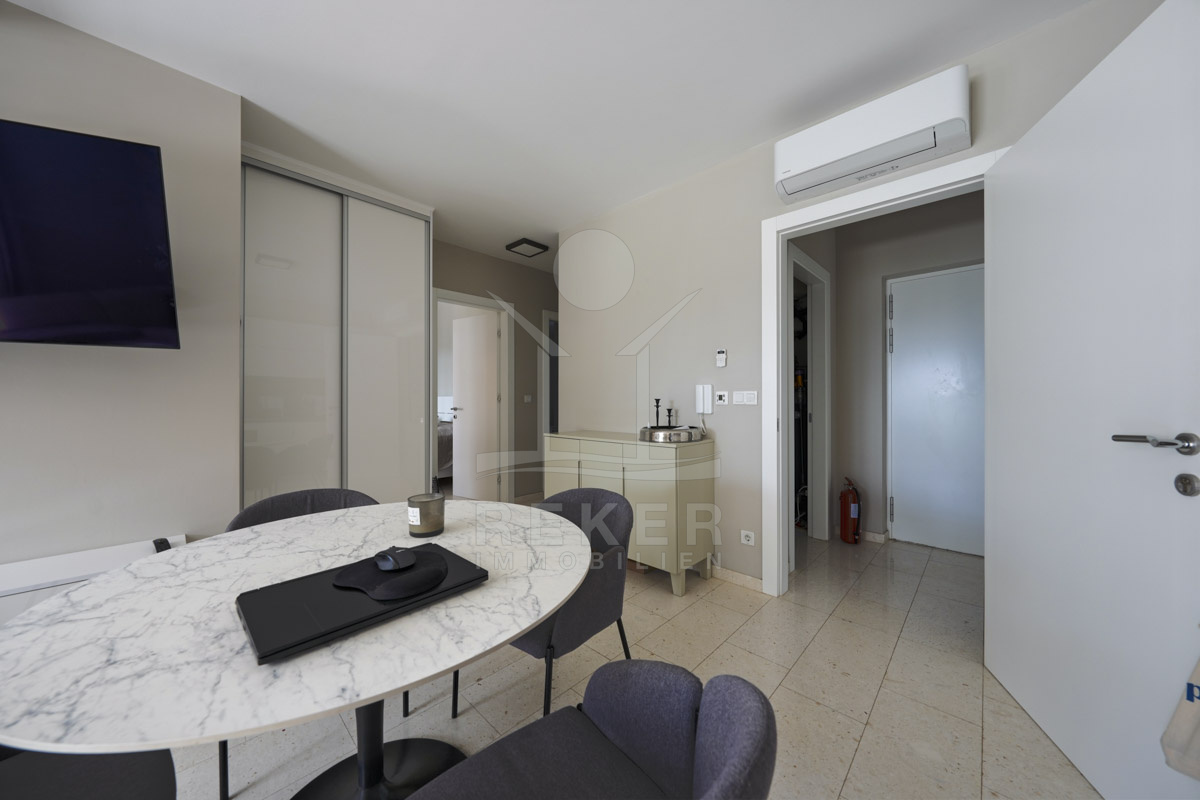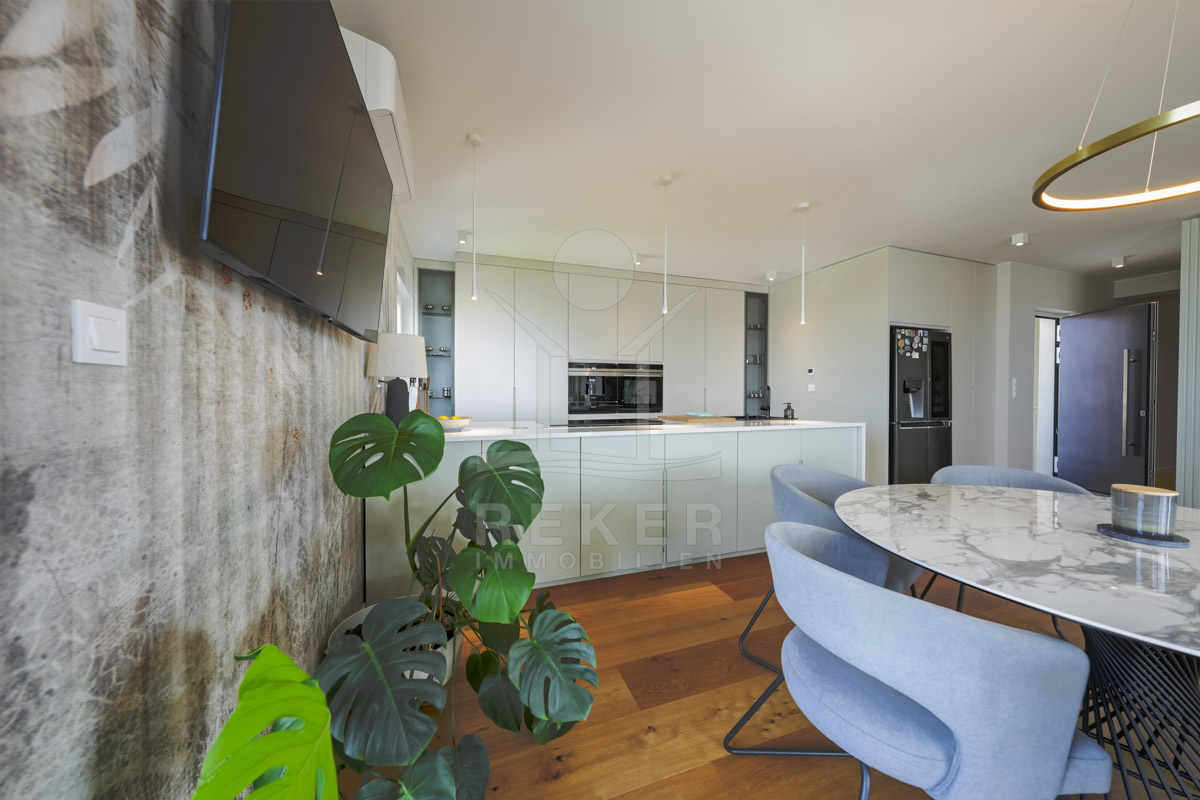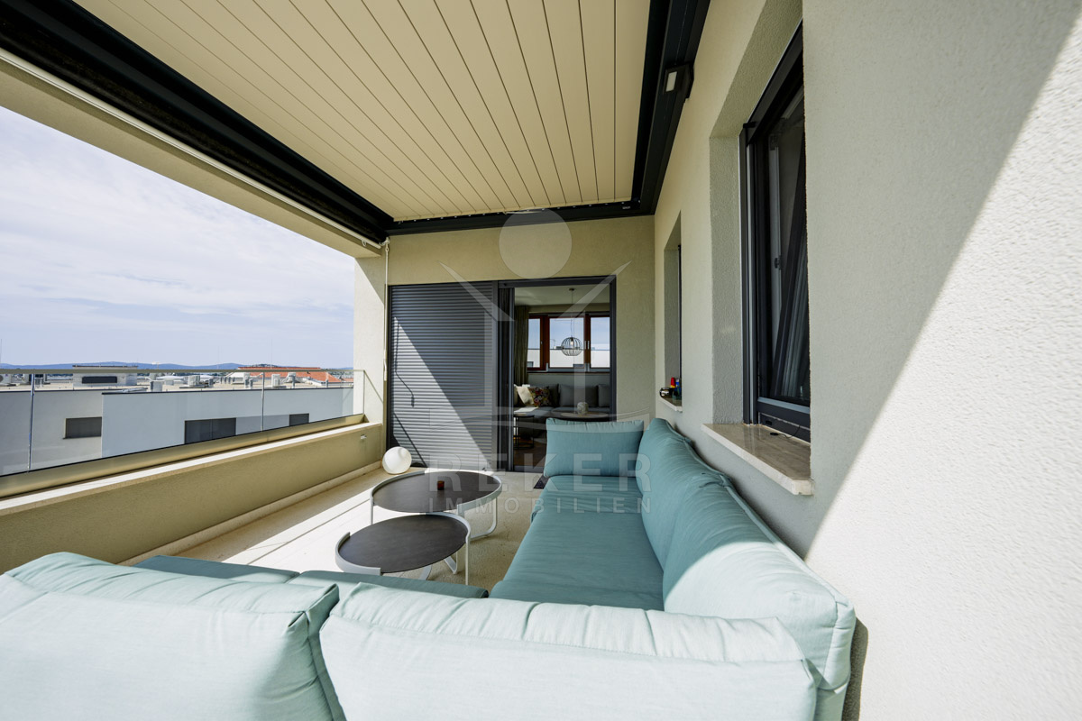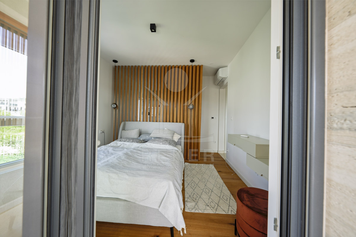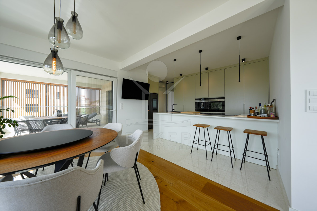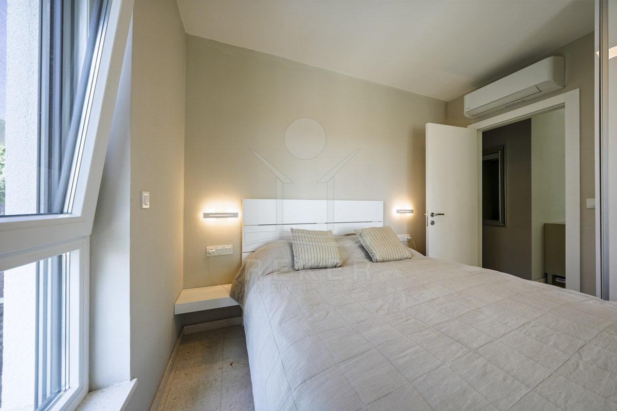 Die Neubauvilla aus dem Jahr 2023 befindet sich in einer ruhigen Wohngegend von Vodice, rund 500 Meter vom Meer entfernt. Sie wohnen abgeschirmt und dennoch nah an Strand und Zentrum. Aus den oberen Etagen reicht der Blick bis zum Meer. Sechs Stellplätze stehen zur Verfügung, zwei in der Garage, vier vor dem Haus. Praktisch bei mehreren Nutzern.