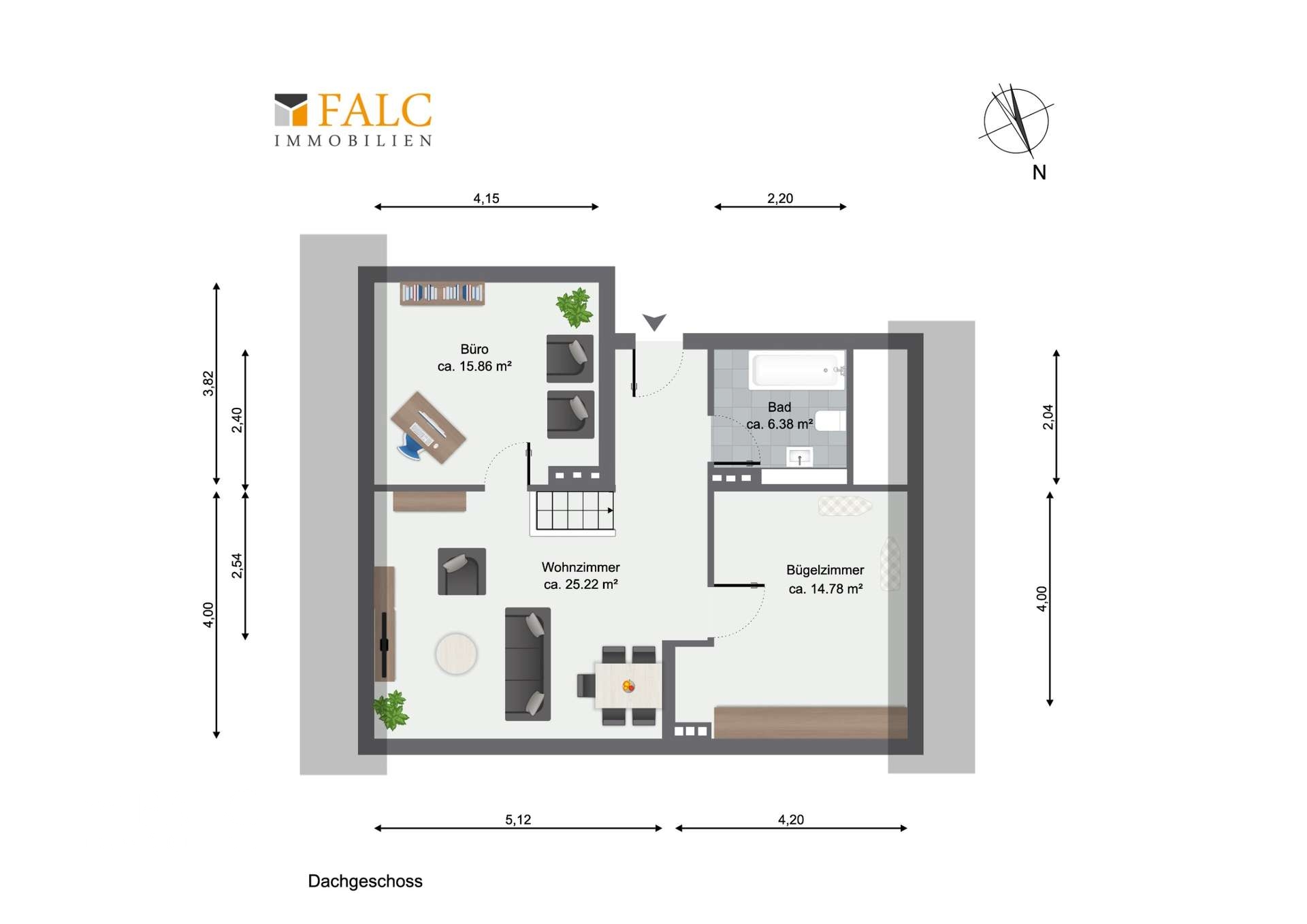 Dachgeschoss (zusätzliche Fläche / Sondernutzungsrecht) • 2016: Erneuerung der Elektrik inkl. Leitungen, Steckdosen und Sicherungskasten • 2016: Verlegung von Laminatbodenbelägen • 2016: Malerarbeiten an Wänden und Decken • 2016: Erneuerung der Fenster