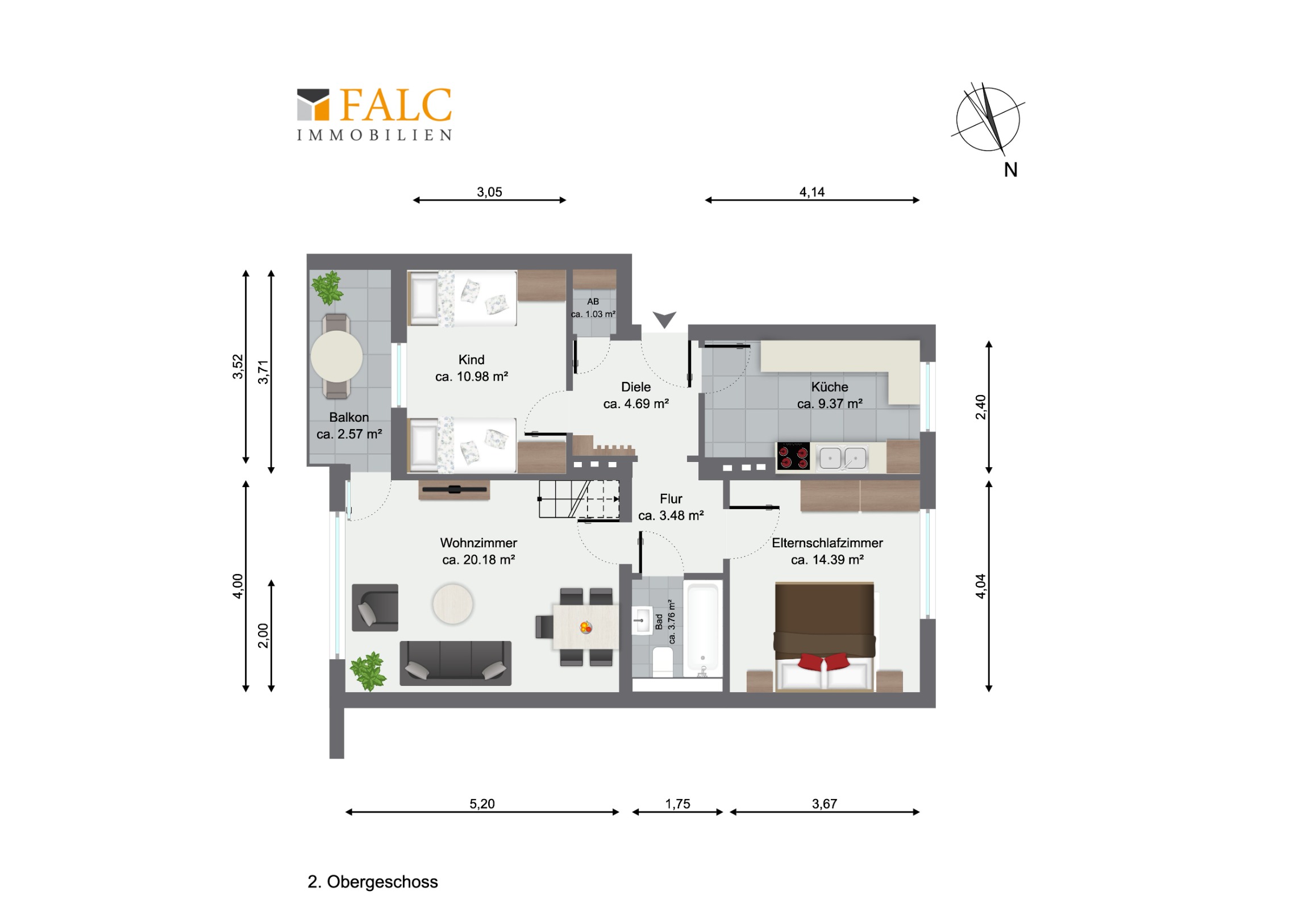 • 6-Zimmer-Maisonettewohnung mit einer Gesamtfläche von ca. 130 m² – ca. 70 m² genehmigte Wohnfläche im 2. Obergeschoss – ca. 60 m² zusätzliche, wohnlich ausgebaute Fläche im Dachgeschoss (Sondernutzungsrecht, nicht Bestandteil der Wohnfläche)