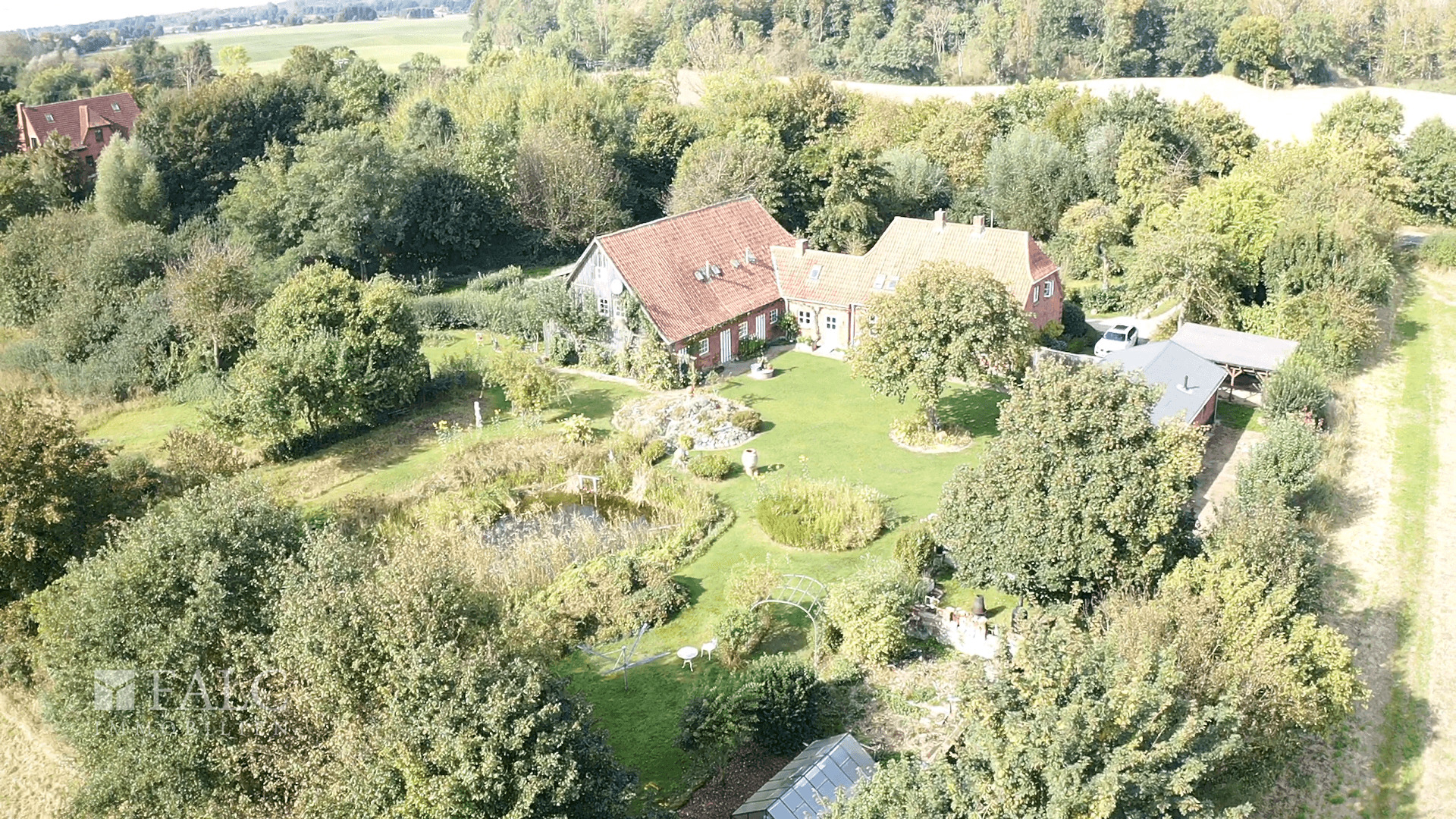 Dieses exklusive Anwesen bietet eine einmalige Gelegenheit für Liebhaber von Natur, Privatsphäre und Raum zur Entfaltung. Der charmante Drei-Seiten-Hof liegt auf einem beeindruckenden Grundstück von 8047 Quadratmetern, das von zahlreichen Bäumen umgeben ist und so eine unvergleichliche Ruhe und Abgeschiedenheit bietet. Mit einer Wohnfläche von etwa 390 Quadratmetern und insgesamt 100 Quadratmetern Nutzfläche bietet dieses Anwesen eine Fülle von Möglichkeiten für individuelle Nutzungskonzepte – ob als großzügiges Familienanwesen, Mehrgenerationenhaus oder als Kombination von Wohnen und Arbeiten.