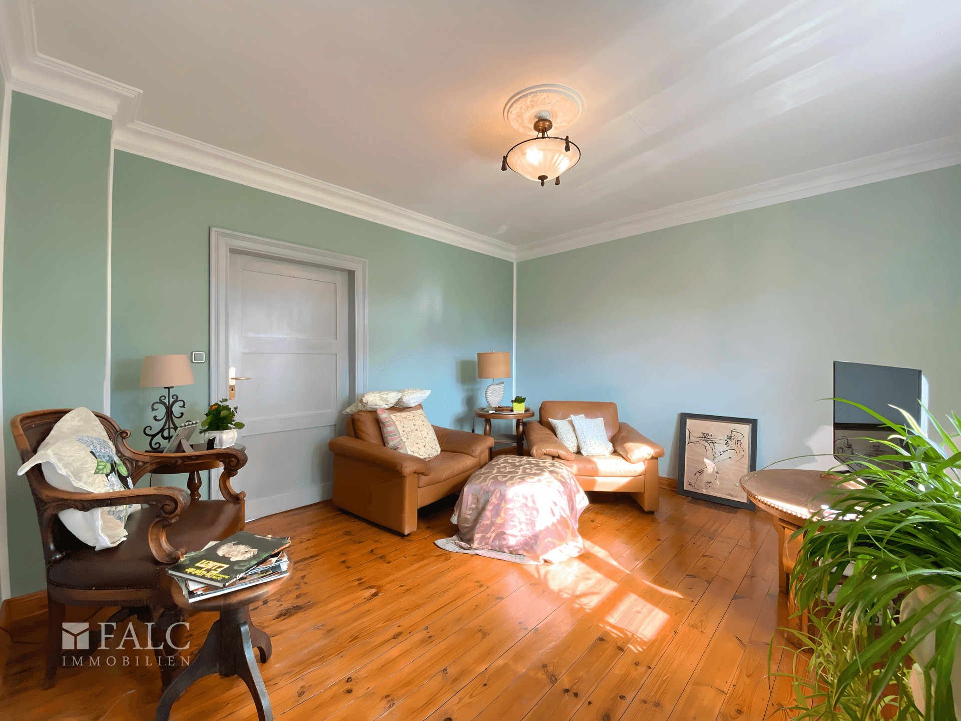 Das Wohnzimmer ist zusätzlich mit einem angrenzenden Familienzimmer verbunden, das zusätzlichen Raum für gesellige Stunden oder als Rückzugsort für die Familie bietet. Vom Familienzimmer aus hat man direkten Zugang zum Duschbad, wodurch sich eine komfortable Nutzung für Gäste oder Familienmitglieder ergibt.
