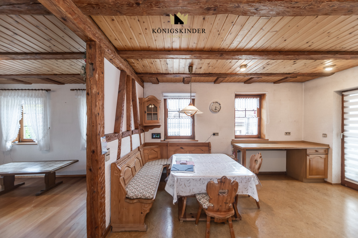 Dieses charmante, freistehende Fachwerkhaus befindet sich im Herzen von Münklingen und bietet eine ideale Kombination aus Wohnen und Arbeiten.