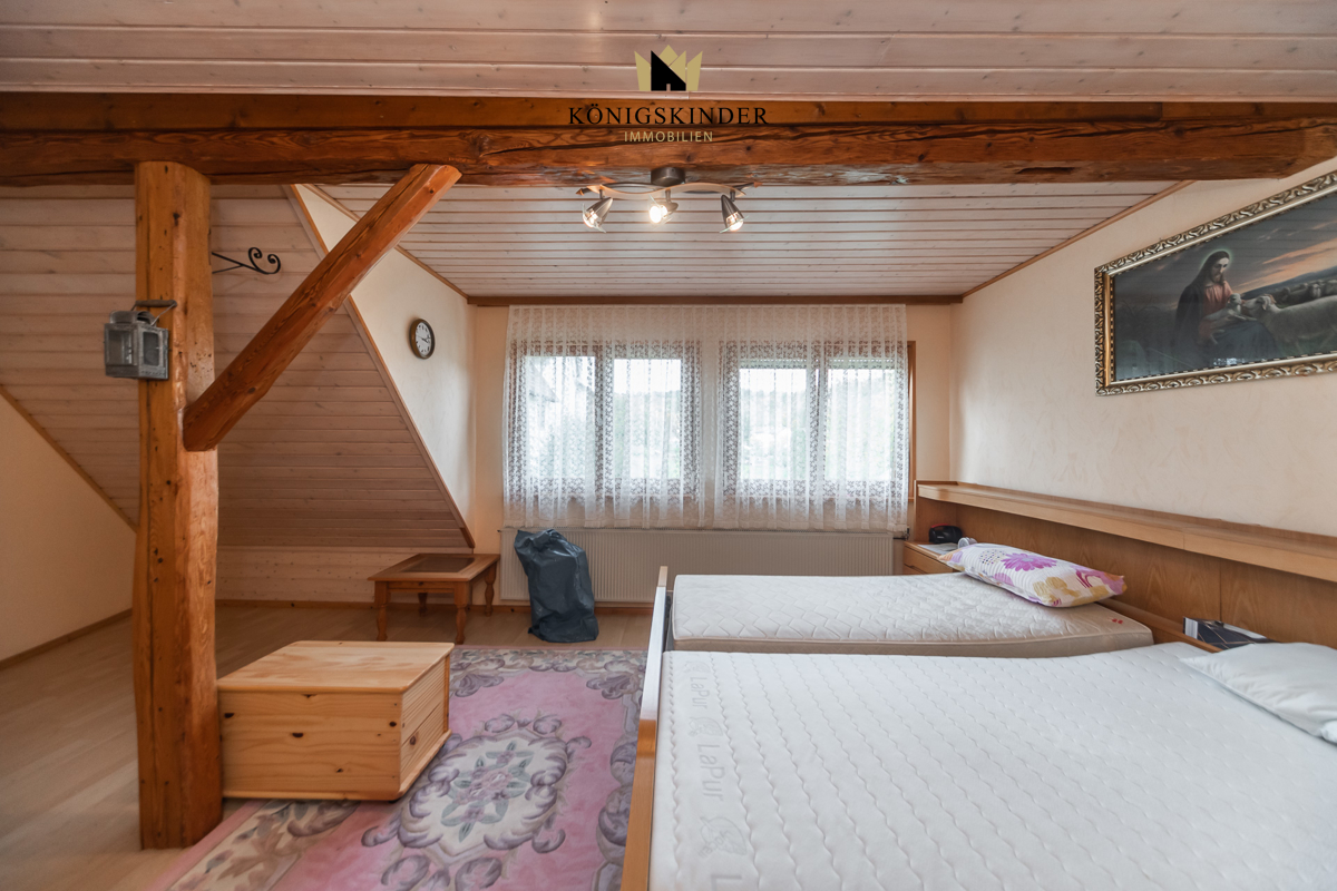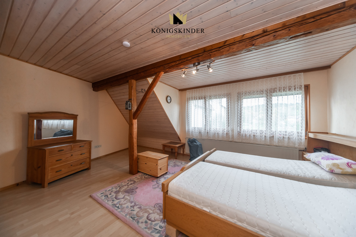 Im Dachgeschoss steht ein weiteres Duschbad und das geräumige Schlafzimmer zur Verfügung. Bei Bedarf können weitere Wohnräume im Dachgeschoss ausgebaut werden. Die Vorbereitungen sind bereits erfolgt.