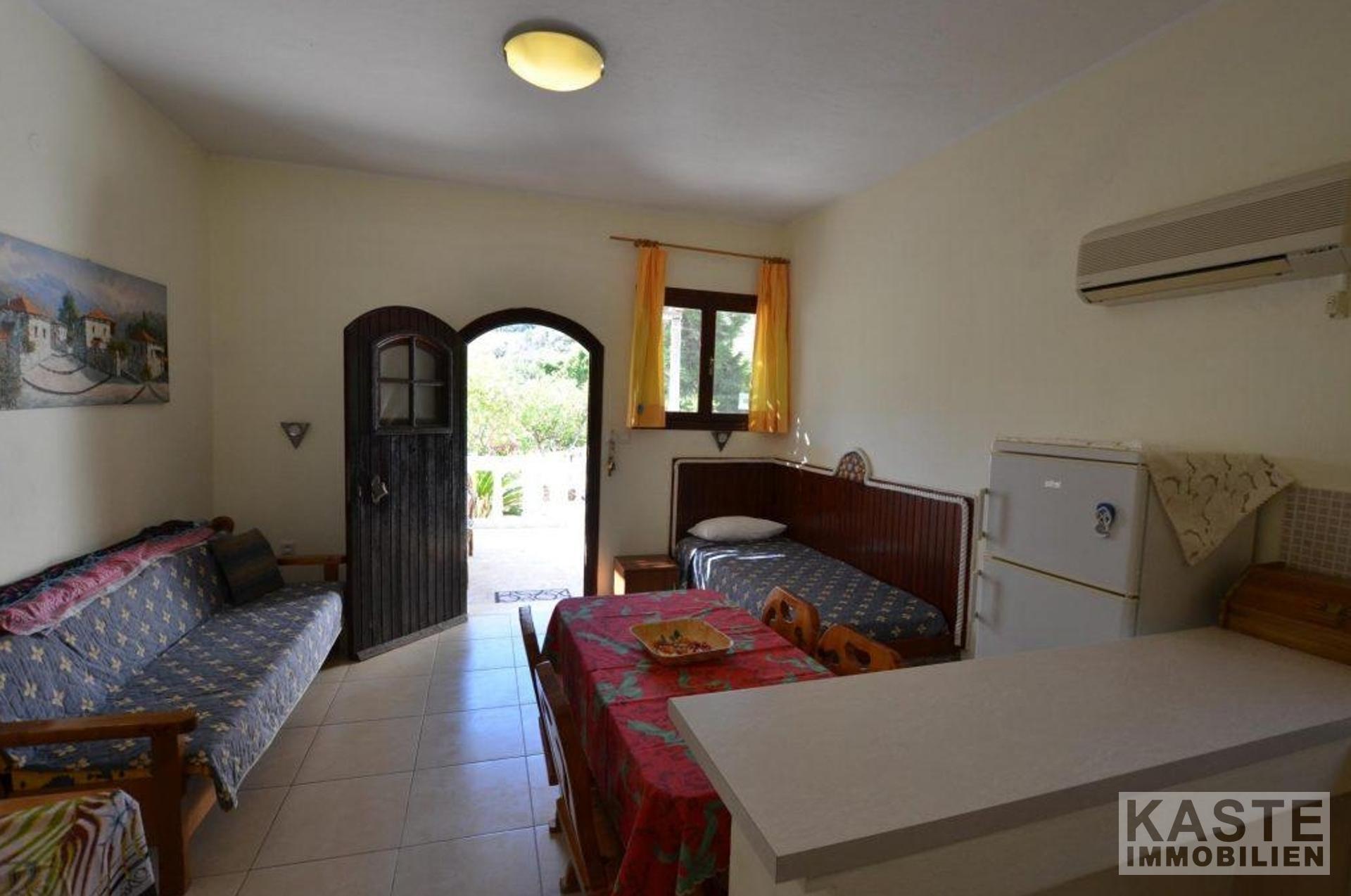 Neben der Villa gruppieren sich die 4 Bungalows, jedes mit eigener Terrasse und Garten. Zwei der Bungalows bestehen aus einem Wohnzimmer mit integrierter Kochnische, einem Badezimmer sowie zwei Doppelschlafzimmern mit praktischen Einbauschränken. Die anderen beiden Bungalows verfügen über ein Schlafzimmer, ein Wohnzimmer, eine Küche und ein Bad.
